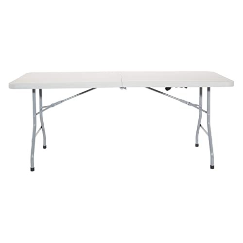 Return Policy Fast Delivery Trusted seller Office Star Resin Rectangle Center-Folding Portable Table for Picnics, Camping, and Tailgating, 6 Feet Product Description 6 foot folding table features a heavy-duty blow-mold light grey resin top for durability and easy cleanup Resin surface is waterproof, scratch, and impact resistant, making this multipurpose table ideal for indoor or outdoor use Powder-coated steel tube framing for strong long-lasting use and lightweight portability; Approved for commercial use The center fold table includes a locking latch design along with a handy built-in handle for easy set-up and transportation Measures 72" W x 29.5" D x 28.75" H; Meets or exceeds test standards (BIFMA and MTL) 350 lbs. evenly distributed Shipping Returns Payment Shipping Shipping is FREE to all addresses other than APO/PO boxes in the lower 48 states. All our stock ships from US-based warehouses. Shipped via USPS or UPS (depending on location and package weight) Unless stated otherwise, all orders will ship within 24-72 hours of your payment being processed. Check our feedback to see the great reviews of FAST shipping we offer. Returns Seller does not accept returns Payment We currently accept payment via eBay managed payments only. Once payment is cleared, we will dispatch your shipment within 1-3 business days. Please refer to the "Shipping" tab for more information regarding shipping speed to your destination.