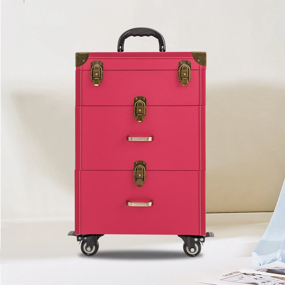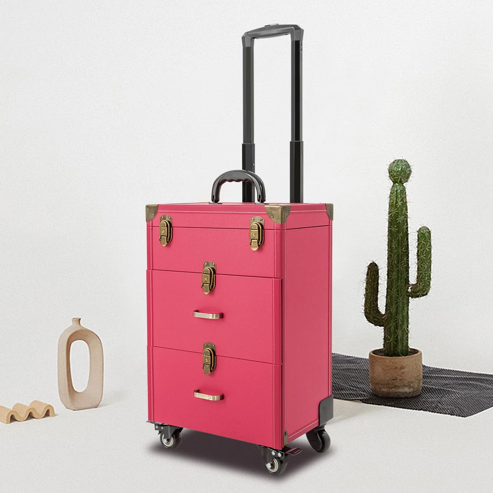 Specification Target Audience: Unisex Adult Caster Type: Swivel Mounting Type: Free Standing Material: PU, PVC, Zinc Alloy, Aluminum Alloy Color: rose Shape: Rectangular Number of Tiers: 3 Number of Wheels: 4 Max. Load-bearing Capacity: 40kg/88.2lbs Number of Keys: 2 Lid Size: 36*23cm/14.2*9inch Wheel Height: 7cm/2.8inch Telescopic Rod Length (Min.): 38cm/14.9inch Telescopic Rod Length (Max.): 86cm/33.8inch Second Tier Inside Size: 30*19.5*13.5cm/11.8*7.7*5.3inch Each Compartment of Top Tier Size(L*W): 3.5*3.5cm/1.4*1.4inch Each Compartment of Third Tier Size: 14.5*19*13.5cm/5.7*7.5*5.3inch Top Tier Height: 9cm/3.5inch Second&Third Tier Height: 17cm/6.7inch Overall Case Body Size: 36*23*49cm/14.2*9*19.3inch Overall Product Size: 36*23*101cm/14.2*9*39.76inch Rolling Makeup Train Case Cosmetic Trolley Makeup Storage Organizer Luggage Box Description If you are troubled by storing all your hairdressing tools in order and finding them easily, our makeup train case can be of great help to you. Featuring high durability, attractive appearance, large capacity, universal wheels, humanized handles, a telescopic rod, and more, this product is easy to carry outside while keeping practical and beautiful. It is an ideal choice for young manicurists, make-up artists, and hairdressers/cosmetics lovers to store various cosmetics. Key Features Beautiful Appearance: Elegant rose color combined with a rectangular frame, smooth lines, and delicate lychee texture gives this product a stylish and beautiful look. High-quality bronze hardware and exquisite stitching also add to its appearance. Durable and Sturdy: This product is constructed with premium PU, PVC, and reinforced corners, aluminum alloy rod, zinc alloy-wrapped edge , which is waterproof, wear-resistant , and has a long service life. Categorized Storage : The 3-tier and compartment designs, cubicles, and a large clear pocket on the lid give this case a large capacity to hold your daily cosmetics and makeup tools in a categorized way, allowing you to quickly find what you want. And the dividers are removable for organizing different sized bottles. Easy to Move&Carry: 4 universal wheels (2 of which are lockable) ensure that the case can be moved smoothly and silently in all directions and allow for safe fixation to handle different road conditions. The telescopic handle and top handle give it high portability. Easy to Clean: The lid and drawer designs can prevent dust from entering, along with the waterproof surface, making it easy to clean. You just need to wipe off the dirt with a wet cloth. High Safety: The 4 latch locks and waterproof surface provide maximum protection and security for your toiletries, giving you peace of mind while traveling. Excellent Load-bearing Capacity: The sturdy construction and the zinc alloy frame provide the product with an excellent weight-bearing capacity of 88.2 lbs. You can place all kinds of hairdressing and beauty tools in it with confidence. Protective Packaging: To prevent the product from being damaged and bumped during transportation, we pack it with pearl cotton for maximum protection of your products. After-sales Service : We aim to provide quality products and services. If you have any problems, please feel free to contact us, and we will reply and solv e the problem for you as soon as possible. Details Back Buckles: The back of the luggage has two hardware eight-nail back buckles to make the case more stable and to ensure that it remains as good as new when repeatedly opened and closed. User-friendly Drawer Handle: The 2 comfortable drawer handles of the second and third tiers allow for convenient closing/opening of the drawers, thus ensuring easy access to the inside items. Application It is good for manicurists, makeup artists, both beginner and professional, freelance makeup artists, wedding makeup artists, celebrity makeup artist, and cosmetic trainees. Structure Overview The inside of the lid has a makeup bag where you can keep the things you use regularly for quick and easy access. The first tier can be used for nail varnish or other small items. The second tier is suitable for larger items such as hair dryers, curling wands, nail art machines, and more. The third tier has two compartments for medium items, such as cosmetics, hairspray spray. Specification Target Audience: Unisex Adult Caster Type: Swivel Mounting Type: Free Standing Material: PU, PVC, Zinc Alloy, Aluminum Alloy Color: rose Shape: Rectangular Number of Tiers: 3 Number of Wheels: 4 Max. Load-bearing Capacity: 40kg/88.2lbs Number of Keys: 2 Lid Size: 36*23cm/14.2*9inch Wheel Height: 7cm/2.8inch Telescopic Rod Length (Min.): 38cm/14.9inch Telescopic Rod Length (Max.): 86cm/33.8inch Second Tier Inside Size: 30*19.5*13.5cm/11.8*7.7*5.3inch Each Compartment of Top Tier Size(L*W): 3.5*3.5cm/1.4*1.4inch Each Compartment of Third Tier Size: 14.5*19*13.5cm/5.7*7.5*5.3inch Top Tier Height: 9cm/3.5inch Second&Third Tier Height: 17cm/6.7inch Overall Case Body Size: 36*23*49cm/14.2*9*19.3inch Overall Product Size: 36*23*101cm/14.2*9*39.76inch Package Size: 63*32*41cm/ 24.8*12.6*16.14inch Gross Weight: 10kg/22.04 lbs Product Weight: 9kg/19.84 lbs Package Included 1*Makeup Train Case 2*Keys Notes Please note that cosmetics or makeup tools are not included. This product is a carry case only. This product includes two keys. Please allow the slight color difference caused by the shooting light and 1-3 cm error due to manual measurement, and make sure you do not mind before ordering. Payment Delivery details Terms of sales About us Contact us Payment We accept ebay payment 。 Fees such as import duties, taxes are not included in the item price or shipping costs. These charges are the buyer's responsibility. Delivery details Shipping: 2-9 working days to: USA Terms of sales We maintain high standards of excellence and strive for hundred percent customer satisfaction. Feedback is very important to us. We hope that you contact us immediately before you g