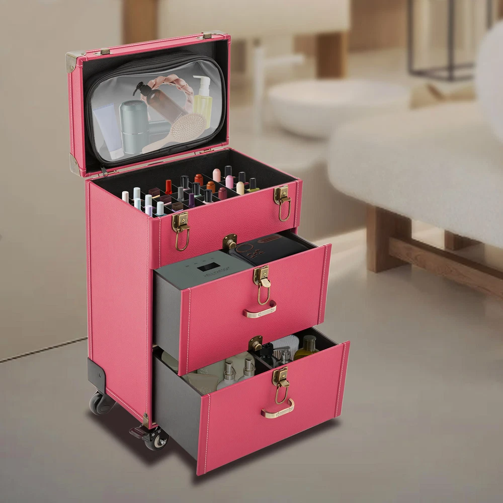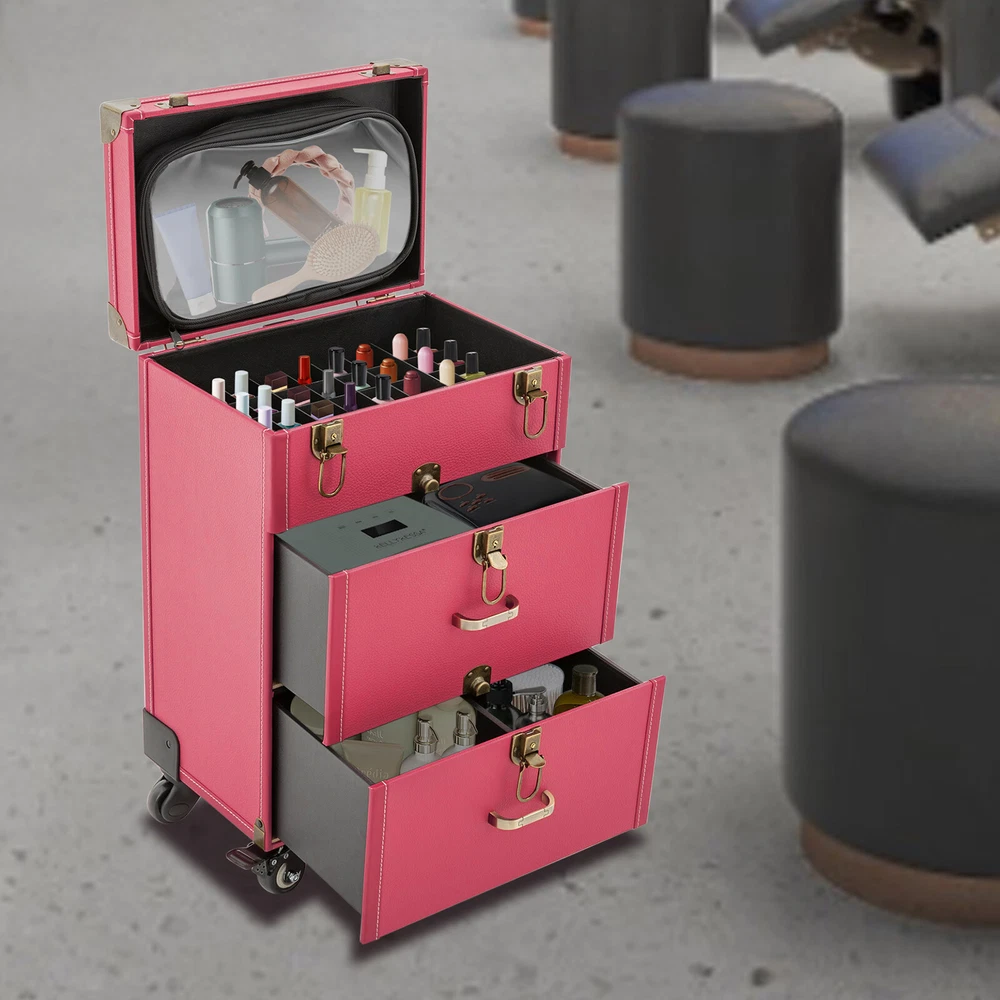 Just got this rolling organizer and wow, it's a total game-changer! Holds all my makeup and nail polishes securely, rolls smoothly, and looks so chic in rose. Perfect for travel or keeping my vanity tidy—absolutely love it!