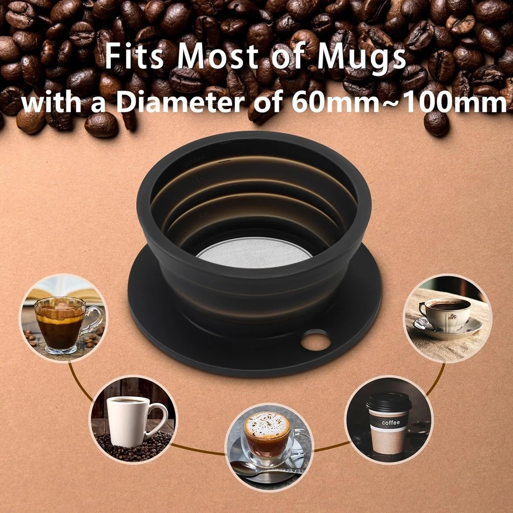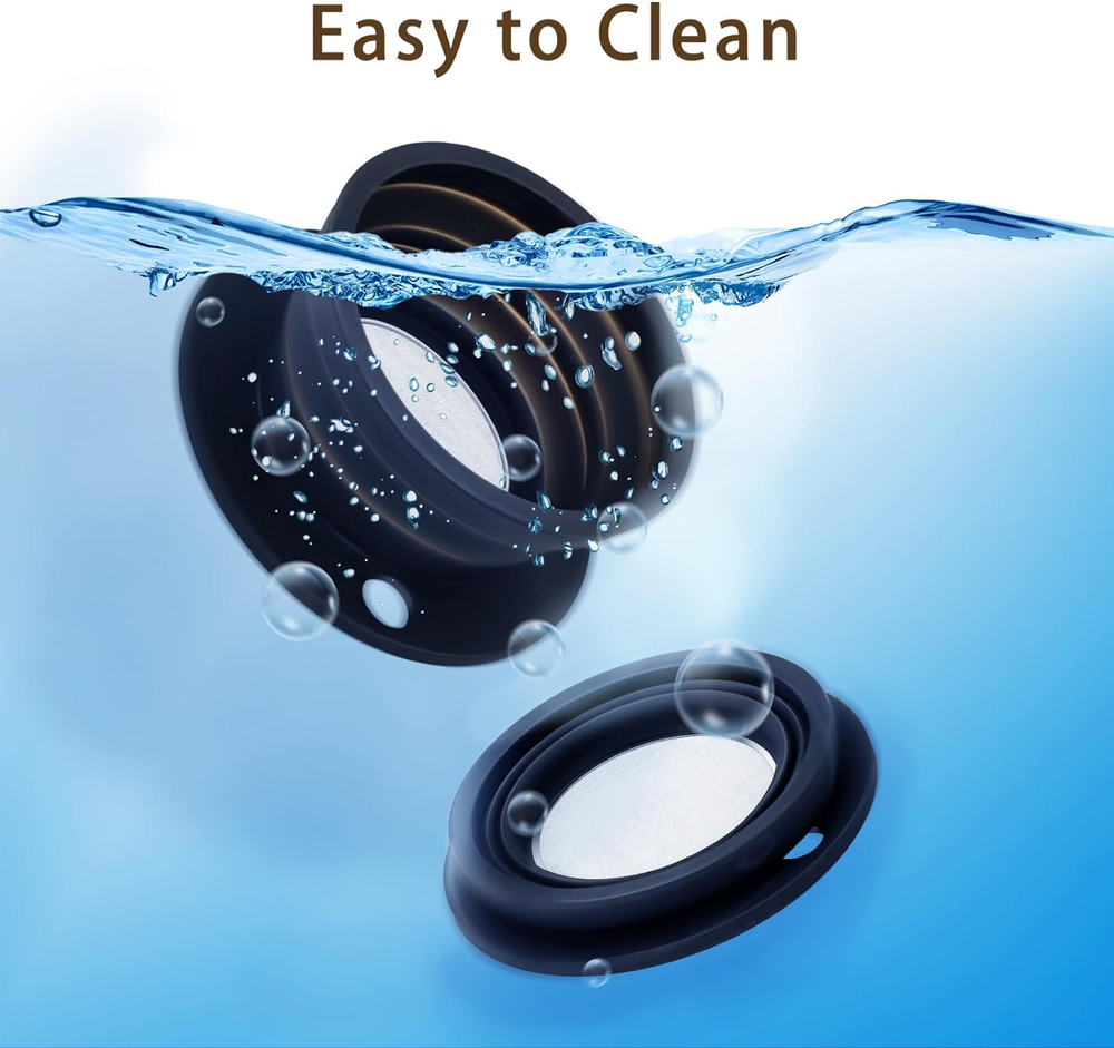 Store New Arrivals Add to Favorite View Feedback Contact Paperless Collapsible Pour over Coffee Dripper - Reusable Silicone Coffee Filter Pour over for Travel and Camping - Single Cup Drip Coffee Maker Pour over with Metal Mesh Coffee Filter (Black) Description Item model number VVG-001 Unit Count 1.0 Count Color Black Material Silicone,Stainlee Steel,Metal Country of Origin China Item Weight 2.39 ounces Shape Cone, Round, Basket Product Dimensions 4.13 x 4.13 x 1.97 inches Number of Pieces 1 [Paperless and Reusable]: Comeing with a reusable stainless steel coffee filter, the drip coffee maker pour over is paperless and reusable, no need to repurchase coffee filter paper, saving money in the long run, enjoying more authentic coffee [Collapsible Design]: Made of collapsible high-temperature resistant silicone material, this foldable coffee filter is lightweight and portable, making it easy to fit into your luggage or backpack, perfect for coffee camping, travel pour over, outdoor activities, and home use [Simple and Practical]: Simply put about 15 grams medium or coarse ground coffee into the unfolding coffee filter cone, pour in an appropriate amount of 200°F hot water, and wait for a few minutes, then you get a cup of delicious coffee for single serving. Due to its simple structure, the drip coffee maker pour over is easy to clean, simply rinse with water and air dry [Broad Applications]: With flat bottom design, the collapsible pour over coffee filter fits most of coffee mugs and cups with a diameter of 60mm~100mm, it is suitable for 1 to 2 people to use, allowing you to make the perfect handcrafted coffee that is both convenient and healthy [High-Quality Materials]: Made from food-grade silicone and stainless steel, materials used in this pour over coffee maker camping are safe, healthy, BPA free and free from unpleasant smells Product Description Paperless Design , enjoy the authentic taste of coffee without using paper filters! Ultra-thin foldable , 1.6cm thickness only after folding, great for camping or travel! Fine screen mesh , recommend to use approximately 15 grams of medium or coarse ground coffee and 200 ℉ hot water to brew one cup of delicious coffee for single serving. Wide edge , compatible with most of coffee mugs and cups with a diameter of 60mm~100mm. More extraction methods available. Easy to clean, simply rinse with water and air dry. Note: During the rinsing process, please try not to press hard on the metal mesh to avoid breakage. ABOUT US We offer the best prices around on high quality products. Our E-store includes media such as books, movies, music and games while offering electronics, toys, sporting apparel, clothing, tools, general home, garden items and more. SHIPPING We are always working hard to ensure your package arrives as soon as possible. Please understand that some factors like weather, high postal traffic, and the performance of shipping companies are outside of our control. We offer free shipping to the lower 48 states and ship within 2 business days of payment, usually sooner. We do not accept P.O. Boxes. Please provide a physical address. RETURNS We offer a 30-Day Return Policy on items which you are not completely satisfied with. You have the option for a full-refund or an exchange of the item. No returns are available on items shipped outside of the USA. PAYMENT We accept PayPal. CONTACT US This page content is yet to come Please ad us to your favorite seller and visit again later Thank You CUSTOMER SATISFACTION We try our very best to make sure every customer is completely satisfied. If there's a problem, message us! We're happy to help.
