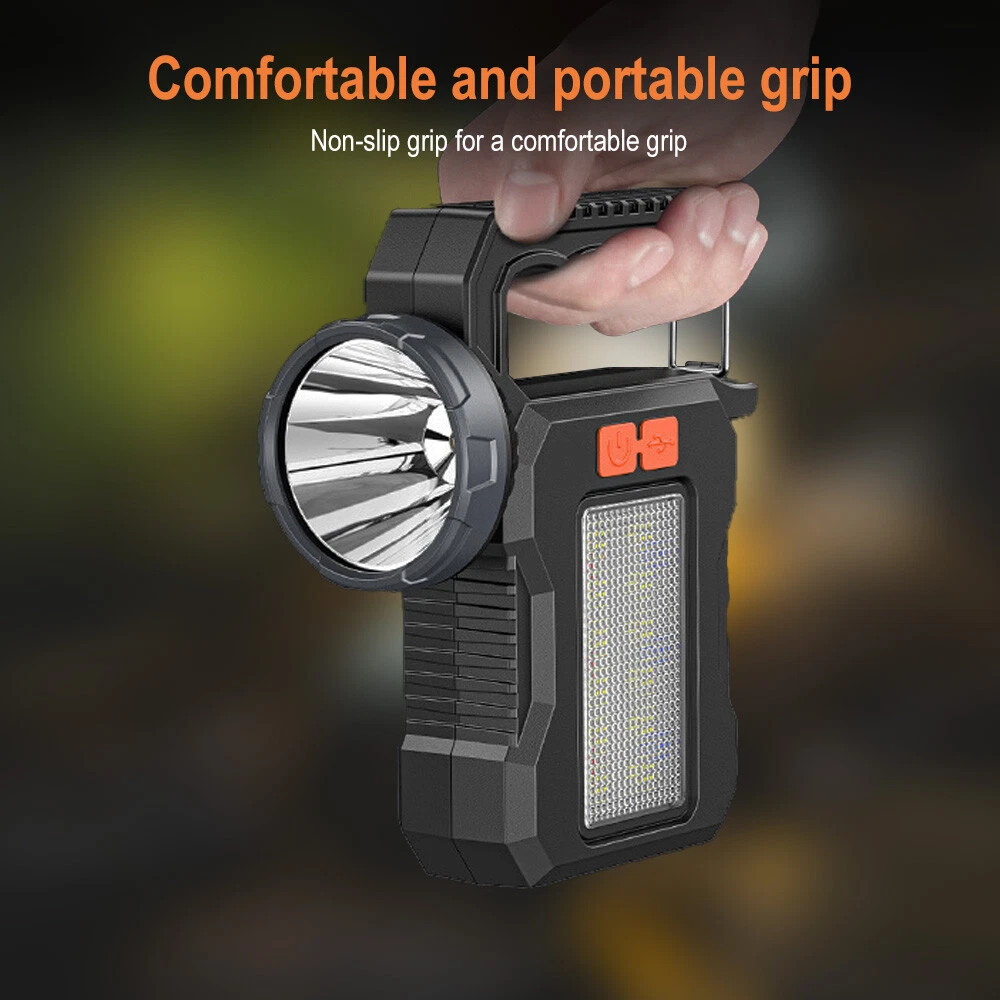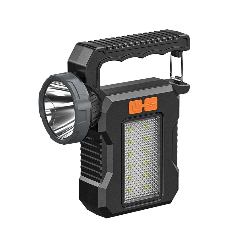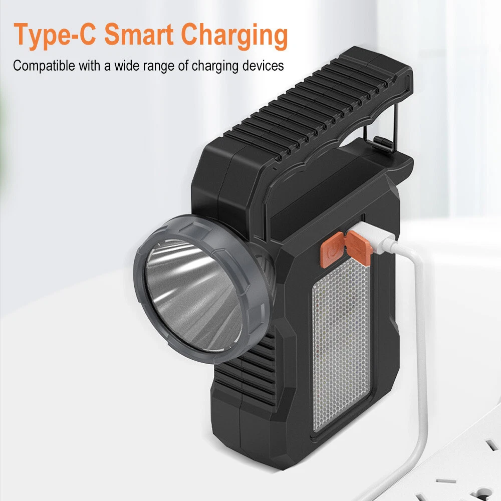 Simplified description of selling points: Efficient lighting: 200 lumens of front light XTE, 90 lumens of white light with 18 2835 lamp beads on the side lights, meeting different lighting needs. Long battery life: 5 hours of use in front light strong light mode, 7 hours in side light mode. Quick charging: Fully charged in 3 hours, supports Type-C interface charging. Multi-function mode: including front light strong light, front light weak light, side light on, red and blue flash and off functions. Portable and durable: 191g lightweight design, ABS material, waterproof in daily life, suitable for outdoor use. Specifications: Product name: K8801 solar work light-EBW2293 Lamp brand and model: Front light XTE (200 lumens) Side light 18 2835 lamp beads (white light 90 lumens) Sales power: 20W Light color: white light Color temperature: 6000K Switch position and method: Press switch Real lumen and wattage: 200LM (front light), side light 90LM Battery model and parameters: Built-in 1200 mAh 18650 battery Full set configuration: 1 work light, 1 Type-C data cable