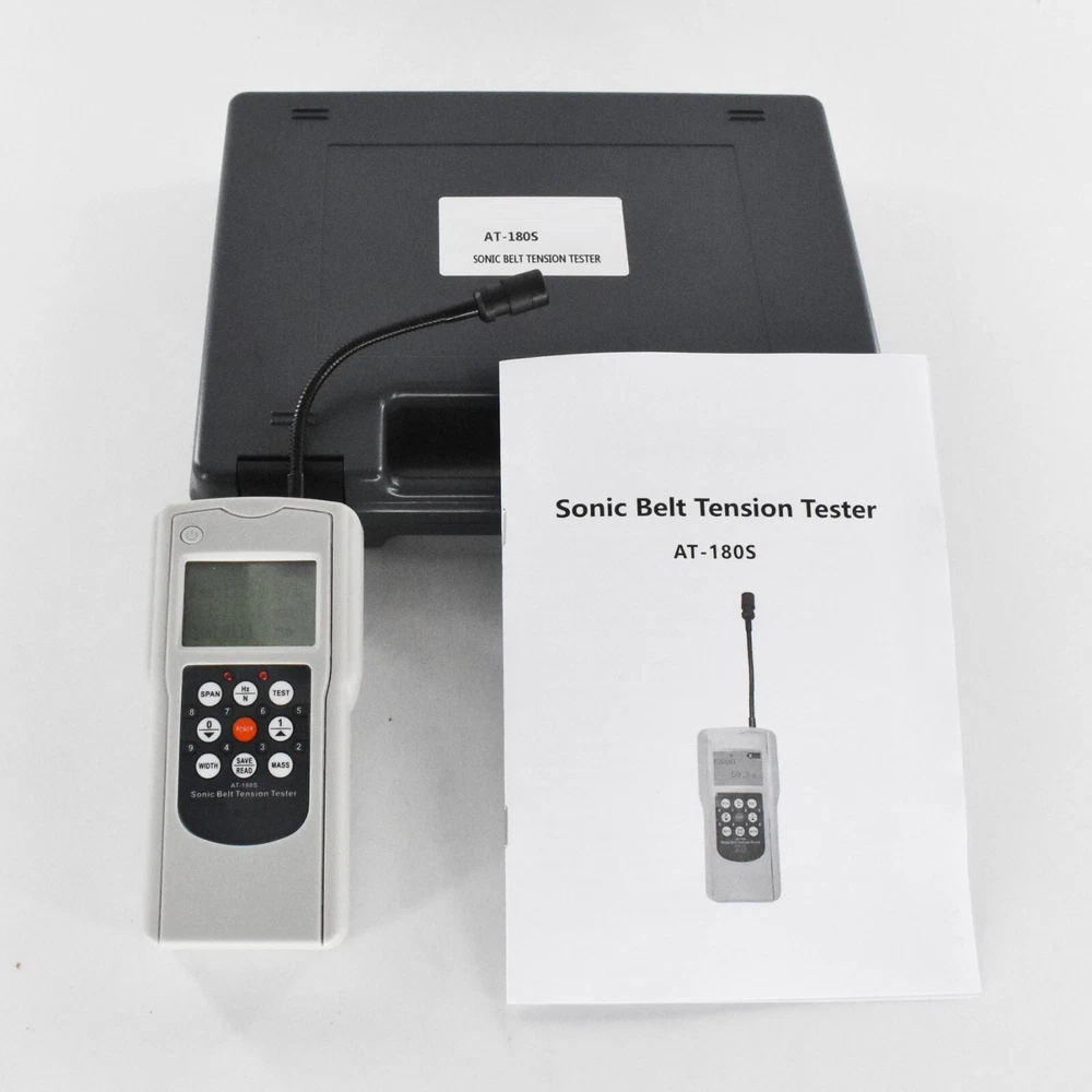 AT-180S Digital Sonic belt tension tester portable Belt vibration frequency Meter Gauge 10-680HZ Describe: It can be used to measure the vibration frequency (unit: Hertz) of the transmission belt when it is hit or moving fast Characteristics: * The probe can be adjusted. * Can store 20 set belt parameters. * Maximum frequency: 680 Hz. * Automatic shutdown, etc. parameter Measuring Range 10-680Hz Belt free strand length Up to 999.9 mm Belt width Up to 999.9 mm/R Belt mass Up to 999.9 g/m Precision ± 1HZ100HZ Digital sampling accuracy < 1% Display accuracy 土 1Hz Overall accuracy < 5% Operating temperature +10° to +50 ° C Transport temperature -5 to +70° C Display LCD Measurement unit Hz/N Power supply 4× 1.5V AAA Housing Plastic(ABS) Dimensions 140x72x34mm Package size 248x206x52mm Standard Accessories Main Unit (one) Operating Instructions (one copy) Portable suitcase(one)