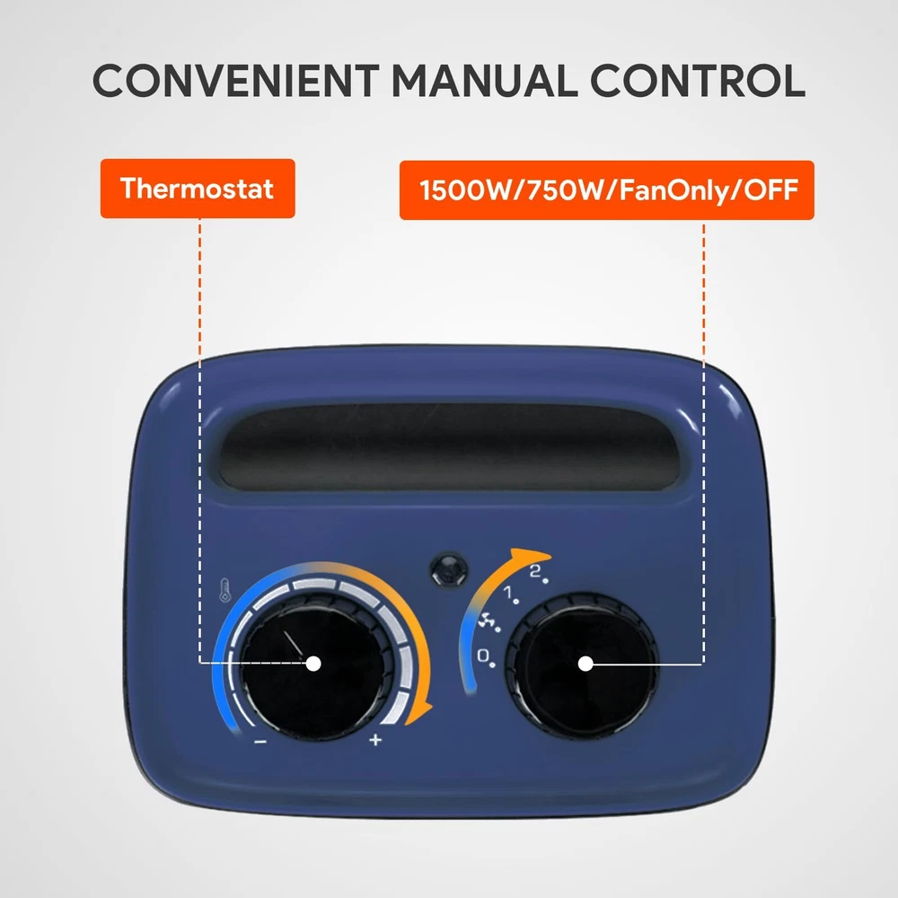 3 Modes and Thermostat:This space heater is deigned with two heat settings, High--1500W and Low--750W, along with a cooling fan function, meeting your needs in different seasons. The small heater is also equipped with adjustable thermostat, which can automatically maintain a constant temperature you set in advance. Efficient Heating:The portable heater uses energy-efficient PTC ceramic heating technology and high-speed fan to improve heating efficiency while saving electricity bills. It can warm a 200 square feet quickly within seconds, perfect for desk, bedroom, office, dorm, sitting room and other small space. Multiple Safety Protection:The room heater is ETL listed and constructed from flame-resistant materials. built in tip-over protection and overheat protection system, which will automatically shut down when it tilts or overheats and ensure the safety of your family. Compact and Portable:The mini heater for indoor use measures 6.5 x 5.5 x 9.3 inches and weighs just 2.38 pounds. With a built in carrying handle and 6-foot UL rated power cord, you can easily use it where you need. Quiet and Comfortable:The office heater body structure has been tested hundreds of times and noise level below 42dB, you can enjoy quiet and warm night sleep in the cold winter. When you need to work or relax quietly, it also won't cause any trouble for you. After Sales:We offer 1 year warranty service, If you have any questions after receiving the heater, please contact us immediately, We will reply within 12 hours.