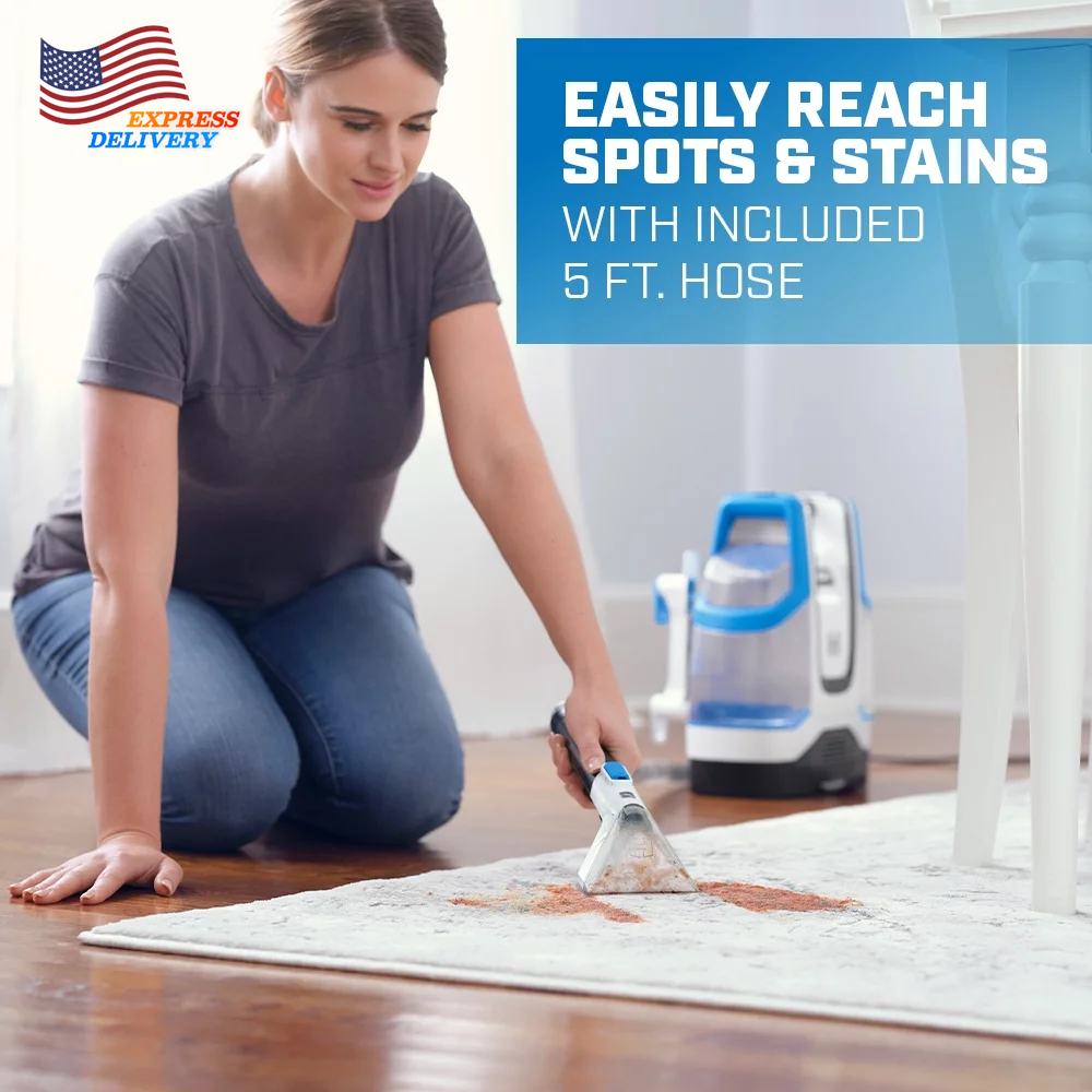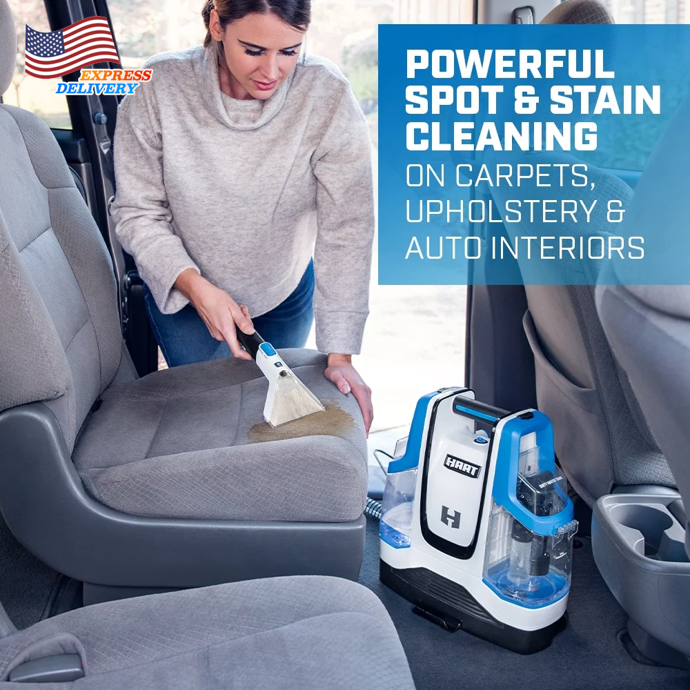 Tackle any accident, including spilled drinks, pet messes, and other stains, with the Hart Spot Cleaner. Ideal for spot and stain cleaning on carpet, upholstery, and auto-interiors. This spot cleaner is "Pet Grade” - made to quickly clean up unexpected pet messes with powerful suction, the 4” Pet tool, and HART Pet Carpet Cleaning Formula. Easily clean spots and stains from room to room with the lightweight design (less than 9 pounds), 5-foot long-reach hose, and 51 oz solution tank. The compact design allows you to easily place on a stair while cleaning and store in small spaces. After cleaning, maintain your machine with the integrated hose cleaning port. Just plug your hose into the back of the cleaner and water flushes through the hose to prevent mildew and build-up throughout the hose. Hart Spot Cleaner includes a trial bottle of HART Unscented Pet Carpet Cleaning Formula for enhanced cleaning performance. The HART Spot Cleaner is ideal for spot and stain cleaning on carpets, upholstery, and auto-interiors. Portable cleaning with a compact, lightweight design (51 Ounce) Clean up pet messes with the included 4” pet accessory tool Easily reach difficult spots with included 45 ft. hose Key Features Includes: (1) Spot Cleaner, (1) Trial-sized Unscented Pet Carpet Cleaning Formula, (1) 4” Pet Accessory Tool, (1) 5’ Hose, and (1) Operator’s Manual Ingredients See bottle label/div>