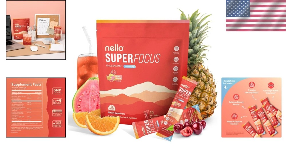 Portable SuperFocus Focus Drink Mix – Enhanced Mental Clarity, 20 Servings Portable SuperFocus Focus Drink Mix – Enhanced Mental Clarity Take your cognitive performance to the next level with our Portable SuperFocus Focus Drink Mix, designed for those who demand excellence in their daily productivity. Key Features: Enhanced Focus & Mental Clarity: Our unique blend powered by Alpha GPC, Lion’s Mane, Rhodiola Rosea, and N-Acetyl L-Tyrosine supports cognitive function, memory, and precision of thought. 75mg Caffeine for Clean Energy: Experience a moderate boost of energy that keeps you sharp without the jitters or crashes—perfect for marathon work sessions or intense study. Delicious Fruit Punch Flavor: Enjoy a refreshing, guilt-free drink that contains zero sugar, making it a delightful addition to your daily routine. On-the-Go Convenience: Each pouch contains 20 easy-to-use stick packs, ideal for busy professionals, gamers, students, and athletes seeking enhanced focus anytime, anywhere. Zero Sugar, No Artificial Junk: Crafted from clean, premium ingredients, SuperFocus is free from added sugars, artificial flavors, and unnecessary fillers—just pure focused energy. Why Choose SuperFocus? In the fast-paced world we live in, clarity and focus are paramount. SuperFocus Drink Mix is your answer to maintaining mental sharpness, whether you're navigating a busy workday, preparing for an exam, or pushing the boundaries in competitive sports. Don't settle for mere productivity. Elevate your concentration and performance with this delicious drink mix and feel the difference. Order your Portable SuperFocus Focus Drink Mix today and embark on a journey of heightened mental clarity and sustained energy! Shipping Free & Fast Shipping - We offer free shipping to most of the USA with a normal delivery time of 3-10 businessdays. However, due to various situations, additional delivery time (up to 3 weeks) may be required for some items. Alternative Carriers - We may use alternative carriers (e.g. USPS, FedEx, UPS, etc.) to ensure your package arrives safely and on time. Due to the use of multiple carriers, we are unable to provide a tracking number automatically. Handling Time - Orders are processed and shipped within 1-5 business days of receiving cleared payment. Shipping Restrictions - Shipping to Alaska, Hawaii, Puerto Rico, Guam, and other US territories may incur shipping charges or delivery restrictions. Please contact us before ordering, or your order can be refunded/cancelled. State Restrictions - There may be restrictions based on your state of purchase. For example, certain items may not be shipped to California due to state regulations. Contact for Tracking Updates - If you require tracking updates or have any concerns about the delivery of your order, please feel free to contact us, and we will be happy to assist you. Return Please see our ebay return policy. We do not accept return on most products. This is to avoid customers mis-using ebay returns. All sales are final. Please be sure to check the return policy listed at the top of the listing. In rare cases, we may accept returns, if the buyer pays both ways shipping and 20% restocking fee. If you are un-sure of return policy of a particular item, please ask before buying. Payment We accept all major credit cards, PayPal, and Apple Pay for your convenience. Your payment information is secure and encrypted to ensure a safe and seamless transaction. Please complete your payment within 3 days of purchase to avoid any delays in shipping. Feedback Your feedback is extremely important to us. We strive to provide the best products and customer service possible. If you are satisfied with your purchase, please take a moment to leave us a positive review. If you have any concerns or issues with your order, please contact us before leaving negative feedback. We are committed to resolving any problems and ensuring your satisfaction. Contact Us If you have any questions or concerns, please feel free to reach out to our customer support team. You can contact us through the eBay messaging system. We are available Monday to Friday, 9:00 am to 5:00 pm EST, and we will do our best to respond to your inquiry within 24 hours. Buy it now and enjoy a pleasant shopping experience! UPC: Not Set Expiration Date: Not Set Unit Quantity: 20 Active Ingredients: Not Set Formulation: Not Set Main Purpose: Not Set Ingredients: Not Set Flavor: Fruit Punch Features: Not Set Type of Diet: Not Set Department: Not Set When to Take: Not Set Brand: Unbranded Type: Drink Supply: 1 Month and Longer MPN: Not Set Number of Pills: Not Set Volume: 2.19 ounces Item Weight: 2.19 oz Country/Region of Manufacture: Not Set Dosage: Not Set Unit Type: oz