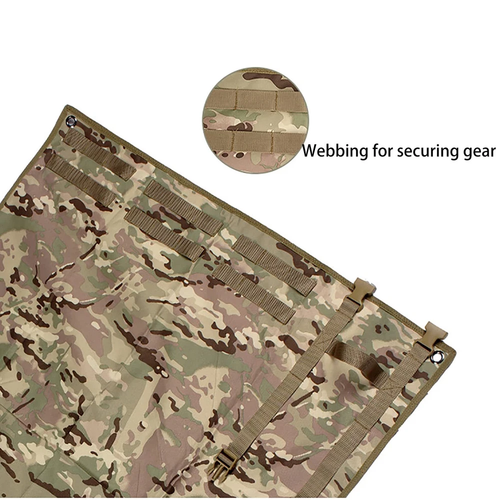 Tactical Shooting Mat, Advanced Shooting Rest, Roll Up Shooting Mats, MOLLE Shooters Mat, Non-Slip Shooting Rest Durable Hunting Mat, Molle Accessories Specification: Material: 1000 nylon with waterproof pu coating,high quality,abrasion and tear resistance. Color: Black, Khaki Storage: Foldable with Carry handle and quick release buckles Buckle: UTX MOLLE: 1'' military spec webbing with reinforced stiching Feature: 1. Made of 1000D double-layered Nylon with waterproof coating. 2. Tactical shooting mat has grommet holes to pin it to the ground during windy conditions. 3. Rolls up small and tight with compression straps and Duraflex UTX quick-release buckles. 4. Provides Extra Comfort: Designed with anti-slip PU elbow/knee patches for steady aims and quick fires. 5. Rolls Out with Enough Space : A simple mat to lay out and keep your body that above the knees out of the mud, dust, or moisture for long-range shooting, hunting or military applications. Demensions: Unfolded Size - 78.6"(L) x 29.5"(W) / 200cm*75cm Folded Size - 8" x 4"/ 20cm*10cm Package Included: 1 x Mat Durable non-padded pad:Non-Padded Shooting Mat Made of 1000D nylon fabric with waterproof coating for long time using. Size:Unrolled Size 78.6” * 29.5” (200cm * 75cm), The folded size: 8"L x4"W(20cm*10cm). Portable:Roll up compact and tight with 2 adjustable straps and quick release buckles. With handle and molle system for easily carry or transport. Convenience:4 stake-down grommet holes on corners, pin it to the ground when needed. 4 stakes included. Multi-purpose design simple mat to lay out and keep your body out of the mud, dust, or moisture. Perfect for long-range shooting, hunting or military applications.