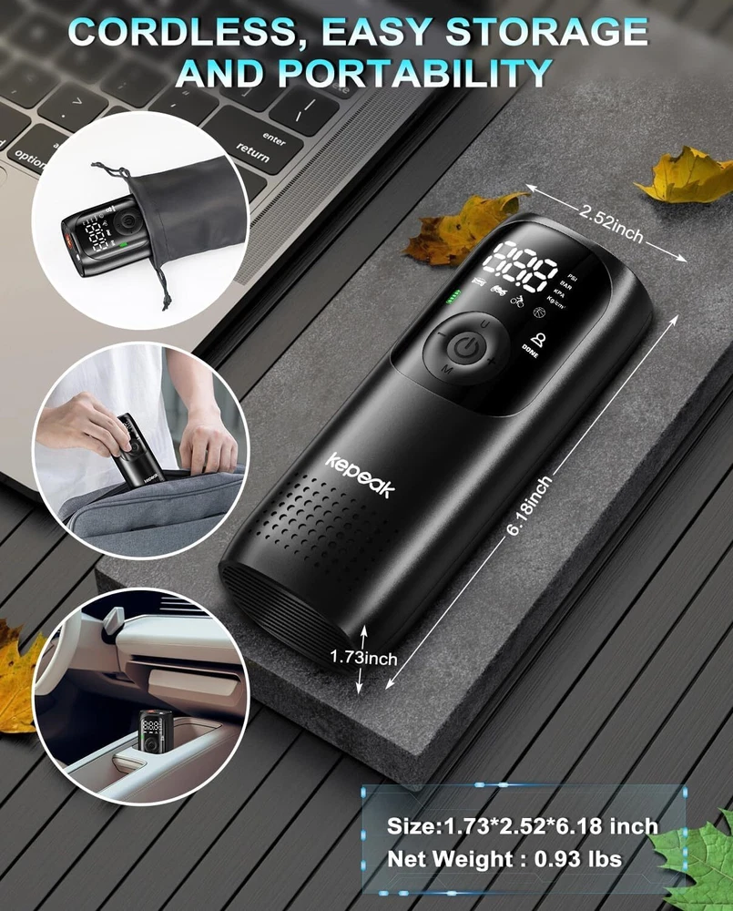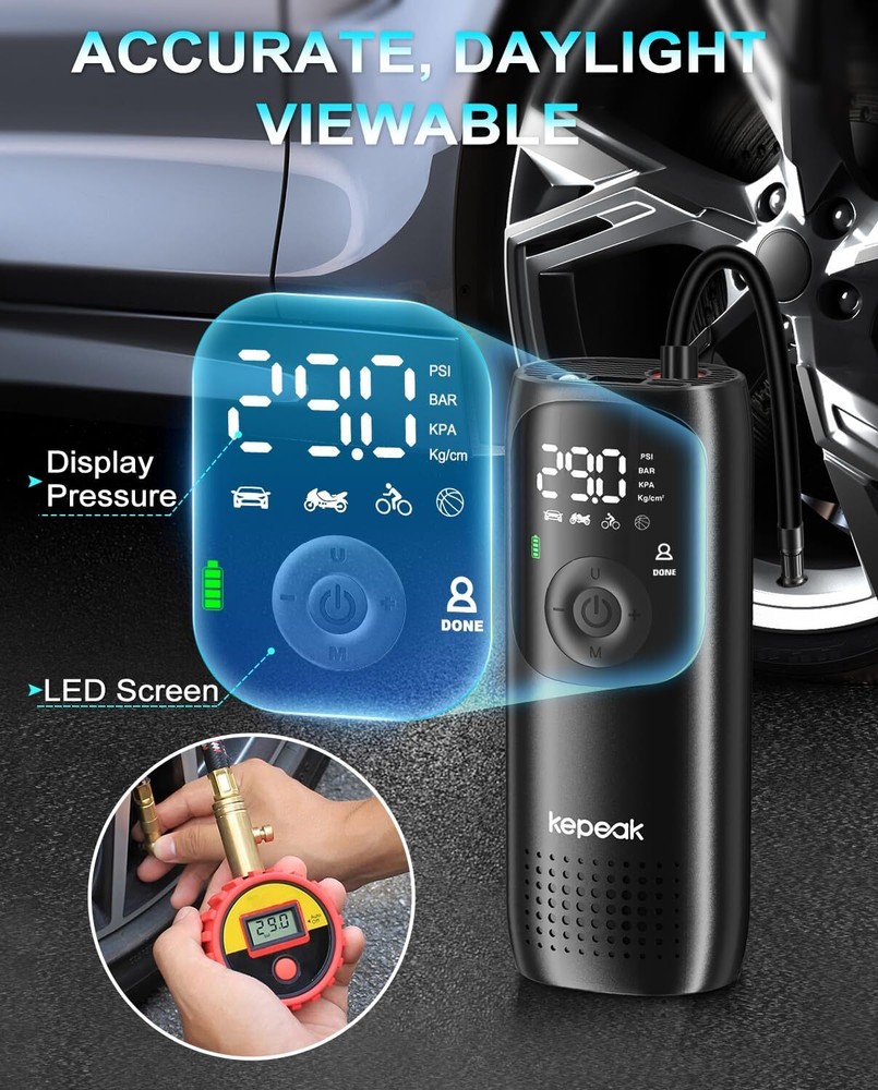 $ 31.68160PSI Portable Tire Inflator with 20000mAh Battery - Fast Air Pump for Cars Bikes