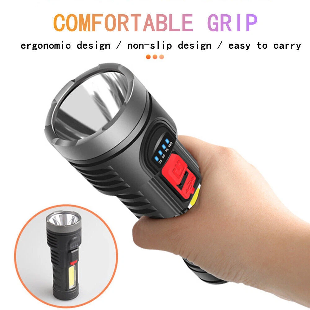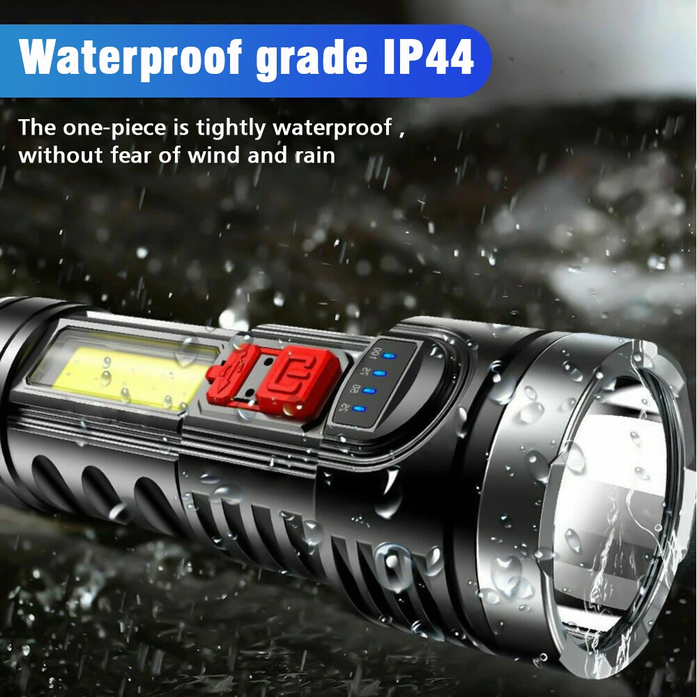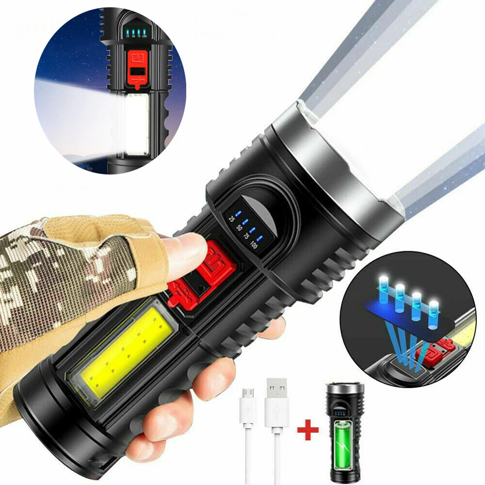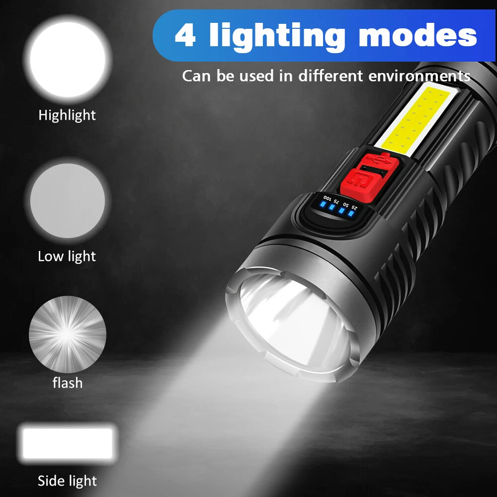Note: Model B Only USB Flashlight,not include Cordless Tire Inflator Pump!!!! A: Cordless Tire Inflator Pump About this item [One-Click Operation, Auto-stop] You can select from (bicycle, motorcycle, car, ball, custom) 4+N preset modes, and 4 preset units (PSI, KPA, BAR, KG/CM²), which makes this portable tire inflator for car super user friendly. With its one-button design, the portable tire inflator starts inflating with just a simple press. Once the desired pressure is reached, the tire inflator portable automatically stops, no more having to drive to the gas station [Accurate, Daylight Viewable LED Screen] Easy to read even under sunlight, the digital screen displays the target value first, flashes for 3s, and then shows the real-time pressure, the built-in pressure gauge of tire pump with +/- 1.5 PSI accuracy, this car tire air pump portable allowing you to inflate tires to the desired pressure level precisely, don't overinflate or underinflate your tires [All in One Device - Tire Inflator, Flashlight, Power Bank] Not only for tire inflation, 3 modes LED light provide convenience for inflating and changing tires in the dark. USB-C input and USB-A output port, as an emergency power pack for your phone. The car air pump is designed to be practical and hassle-free in any situation [Cordless Inflation, Sto re with Ease] Wireless battery-charged design enables the car tire pump to have easier air inflation. Weighing only 0.93 pounds, the compact size and lightweight tire air pump is convenient to carry around or store in your glove box, trunk, bicycle rack, car, or backpack [Supports Presta Schrader Valve] The air pump for bike tires comes with a Presta valve, connecting the hose directly to Schrader valves, ball needles, and swim rings nozzle, the variety of nozzle attachments included make the tire pump for car portable versatile enough to handle your inflation needs, such as bikes, motorcycles, cars, balls, and small floats Does the tire inflator air compressor support Presta valves? Yes, this bike pump portable come with a presta valve adapter. Which nozzle do I use this car tire air compressor to fill my car tires? Use the nozzle on the hose, this cordless tire pump is no need other attachment for car tires. Is this car tire pump portable suitable for inflating bike tires, motorcycle tires, car tires? Yes, this cordless inflator is suitable for inflating bike tires, motorcycle tires, car tires. it includes a Presta valve adapter, allowing it to be used as a bike tire compressor. Does this portable car compressor automatically shut off when desired pressure is reached? Yes, this portable car pump is easy to use and it will automatically shut off once the desired pressure is reached. =========================================== B: USB Bright Flashlight Feature: 1.USB Rechargeable: Micro USB charging port, supports multiple charging methods, making charging more convenient. 2.Four-level Real-time Power Display: Charging indication: the blue light flashes when charging and stops flashing after fully charged. 3.4 Lighting Modes: strong light-low light-strobe-COB side light. 4.Built-in Large-capacity Battery: 1200mAh lithium battery will allow this headlight to provide long lighting time. 5.Durable to Use with Great Performance: High-quality and high-strength ABS mater ial, large aluminum reflector, high light-gathering performance, enhanced long-distance effect, can emit comfortable and smooth spots. 6.Fast Heat Dissipation: Thick aluminum lamp cup, large area heat dissipation design. 7.Waterproof Design: Waterproof design allows this headlight to be suitable for outdoor use, especially in rainy days, but cannot be immersed in water. 8.Wide Application: It is suitable for outdoor activities, such as fishing, hunting, climbing and camping. Specification: Type: USB Rechargeable Camping Headlight Size: 145.5 * 57mm Waterproof Grade: IPX4 Battery Capacity: 1200mAh 4 Lighting Modes: strong light-low light-strobe-COB side light Micro USB charging port, supports multiple charging methods. Four-level real-time power display, charging indication: the blue light flashes during charging, stops flashing, charging is complete. Four lighting modes, strong light-low light strobe flash-core rod bright side light. Built-in large capacity rechargeable lithium-ion battery. High-quality high-strength absorbing material, large aluminum reflector, high light-gathering performance, enhanced long-distance effect, can emit a comfortable and soft spot. Transparent thick aluminum cup, large area heat dissipation design. Portable flashlight, size as picture, service life waterproof ipx4, not immersed in water. Package Included: 1 * Flashlight 1 * USB Charging Cable