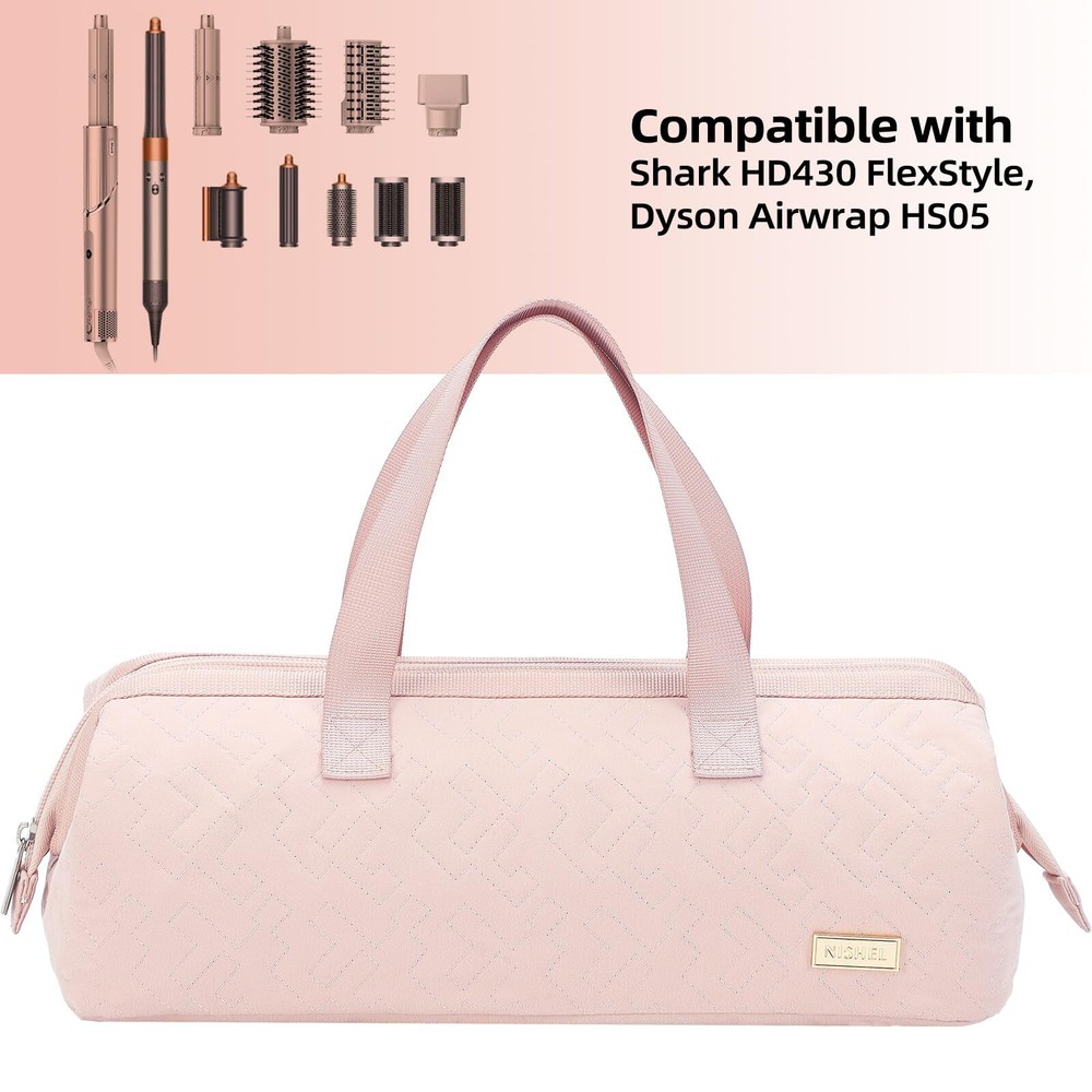 NISHEL Hair Tools Travel Carrying Bag, Portable Hair Air Wrap Dryer Case, Curling Iron, Airstraight Attachment Organizer, Hairdressing Set, Pink DESIGN FOR HAIR STYER AND ATTACHMENTS: 13.75*5.9*5.5 inch, Specially for Shark HD430 FlexStyle, and compatible with Dyson Airwrap HS05, and can also accommodate hair dryers of similar sizes WIDE OPENING: Allows you access to things quickly. The stiff wire design at the opening allows the bag to maintain a large opening without shrinking inward when opened PARTITION DESIGN: Prevent hair curler wand and hair dryer set from bumps, scratches, and other physical damage SMALL POCKET & ELASTIC BAND: Keep your small hair accessories organized EASY PORTABILITY: The double handle strap makes it easy to travel and carry. It is very convenient whether it is hung on the arm or carried in the hand SHIPPING Domestic Buyers - We have confidence in our products, but if you are not fully satisfied please contact us within 30 days of purchase and you will get full refund. - We ship within 3 business days of payment, usually sooner - We offer FREE shipping on all orders! - We only ship to the lower 48 states, no APO/FPO addresses or PO Boxes allowed International buyers – please note: Import duties, taxes, and charges aren't included in the item price or postage cost. These charges are the buyer's responsibility. - Please check with your country's customs office to determine what these additional costs will be prior to bidding or buying. * Order Cancellation Policy ** You can return a product for up to 30 days from the date you purchased it. 1. The seller reserves the right to cancel the special case only due to eBay cancellation fee. 2. The decision of seller is the final. 3. The seller will respond to the cancellation request within 2 business days. Please wait for the result of cancellation. 4. In case the cancellation is not completed by some reasons, the buyer can follow the options below to get the refund. 4.1 The buyer can reject the item when it arrives. 4.2 The buyer can send the item back to the seller within 30 days If the buyer receives item (USA Shipment ONLY). The seller will provide the FREE return label to the buyer when the buyer opens " Return Item" case on eBay by using the reason as "Change my mind" ONLY. 5. When buyer has placed the order. The order will be processed and completed by automatic warehouse system within 5 minutes. In case that buyer sends the cancellation request after 5 minutes of placing the order, the request will be rejected. **Sending direct message to cancel the order is not allowed for every case.* Return Policy For the return case - If buyer would like to return the items for refund or replacement, please CONTACT SELLER to receive the free return label from seller. The refund or replacement will be processed with the tracking number of return label which is provided by seller only. The other ways of return which are not approved by seller will not be processed for the refund or replacement.