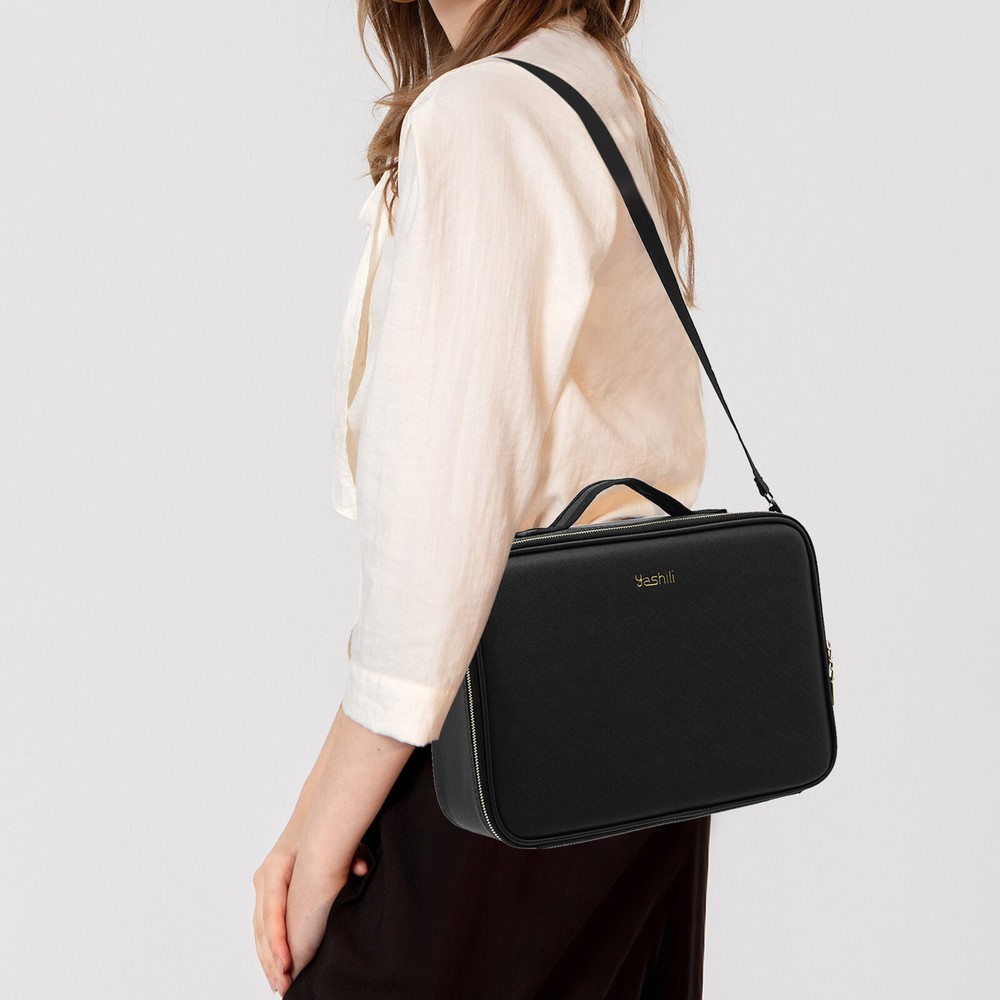 Travel Makeup Train Case Storage Bag With Mirror+Lights Cosmetic Bag Organizer Makeup Bag with Mirror and Lights 3 Color Settings Travel Makeup Train Case Cosmetic Bag Organizer Portable Artist Storage Bag with Adjustable Dividers Description Makeup Bag with Mirror and Lights This makeup bag with mirror and lights can be used for both cosmetics storage and makeup. The high-definition illuminated makeup mirror can help you complete all kinds of makeup effects, meet all kinds of needs of your daily commuter makeup or delicate evening makeup, and let you complete a magnificent transformation! Key Features Must-have When Travel: The large capacity of 2000 mAh and the type-c interface leave you away from the problem of batteries running down. And built-in high-definition cosmetic mirror can let you quickly complete your makeup needs during the journey. Three Color Lighting: The professional large makeup bag with a mirror provides three color lighting modes. You can touch the middle button control switch or press and hold the button P to adjust the light brightness or touch the button M to change the light colors to create a more suitable makeup environment. 4K Large Mirror: The makeup mirror included in this makeup bag is a 4k large mirror with the size of 9.3*9.4in, which can restore details with 1:1 high fidelity, simulate the daily commute lighting environment, and restore your makeup effect under natural light. Freely Adjust: You can freely adjust the position of the partition according to the volume and shape of your cosmetics to keep the internal cosmetics in order at all times. Thoughtful Design: The makeup brush storage areas can store the makeup brush, clearly showing the type of brush, and protecting the mirror. It is covered with film so the makeup residue can be cleaned with a gentle wipe. Stylish and Exquisite: This makeup bag has classic and versatile black color and its exquisite appearance is so stylish that you can't help but fall in love with it Quality Assurance: This makeup bag uses high-quality PU, which is of high quality and durable. In addition, its partition is made of EVA and wood, which is not easy to break. What's more, the zipper made of alloy is waterproof, anti-corrosion, and also does not easy to lose color. Easy to Carry: This makeup bag unlocks more ways of carrying. The shoulder strap design and the pull rod pocket design allow you to carry it on shoulder or on the luggage rod, just to give you a better and more comfortable travel experience. Ready to Use: It has a one-piece design without the need for installation. You can use it directly when you receive it, which is very convenient. Details Supporting Strings: There are two strings to keep the makeup bag open and facilitate your daily use. Double Zipper Design: The double zipper design of this cosmetic bag makes it easy for you to open and get cosmetics. Application This makeup bag can be used as a desktop organizer and makeup organizer, and can also store all kinds of cosmetics, nail polish, nail scissors, paper towels, and other daily appliances . Specification Material: PU, Glass, EVA, Wood, Fabric Color: Black Shape: Rectangular Light Colors: Cold Light, Natural Light, Warm Light Cold Light Color Temperature: 5300K Natural Light Color Temperature: 4300K Warm Light Color Temperature: 3600K Rated Input Voltage: 5V Battery Capacity: 2000mAH Mirror Size: 24.5*26cm/9.6*10.2in Cosmetic Brush Storage Board Size: 34*23.5cm/13.4*9.3in Product Size: 38*27*12cm/15*10.6*4.7in Package Size: 40*29*14cm/41.3*14.2*9.8in Net Weight: 1.5kg/3.3lbs Gross Weight: 2kg/4.4 lbs Package Included 1* Makeup Bag with Mirror and Lights 1* Charging Cable 1* S houlder Strap Payment Delivery details Terms of sales About us Contact us Payment We accept ebay payment 。 Fees such as import duties, taxes are not included in the item price or shipping costs. These charges are the buyer's responsibility. Delivery details Shipping: 2-9 working days to: USA Terms of sales We maintain high standards of excellence and strive for hundred percent customer satisfaction. Feedback is very important to us. We hope that you contact us immediately before you give neutral or negative feedback, so that we can address your concerns. It is impossible to address issues if we do not know about them! About us Your satis faction is our ultimate goal. We work hard to earn your trust and future business. Our certified technicians have tested each item before shipping. The unit comes with 1 year limited warranty on all manufacturing defects. a) If you receive a defective item, you may return it or ask for a discount. Please contact us within 14 days after you receive the package. b) What you returned must be intact and in its original packaging as re? u. Customer is responsible for shipping costs of the returned item. c) We will cover the cost of shipping back t with the shipping rate indicated in the registration page. We will send you a new unit or refund the full payment you paid. Thank you. Contact us Business Hour Business Hour: Monday To Friday: 8:30 AM to 5:00 PM (Beijing China time) Due to time zones, our reply to your questions may not be immediately. But within above working time, we will reply your email within 24 hours. If it's non-workdays, please kindly be patient and wait till Monday. Please contact us with ebay message. Please feel free to contact us if you have any questions. Monday To Friday: 8:30 AM to 5:00 PM (Beijing China time) Due to time zones, our reply to your questions may not be immediately. But within above working time, we will reply your email within 24 hours. If it's non-workdays, please kindly be patient and wait till Monday. Please contact us with ebay message. Please feel free to contact us if you have any questions. *Festures1 Durable Material,Good quality Feature3* Exquisite appearance,Durable material * Feature * Stable characteristics, high reliability Features Fast shipping from US Warehouse Brand Unbranded Type Makeup B