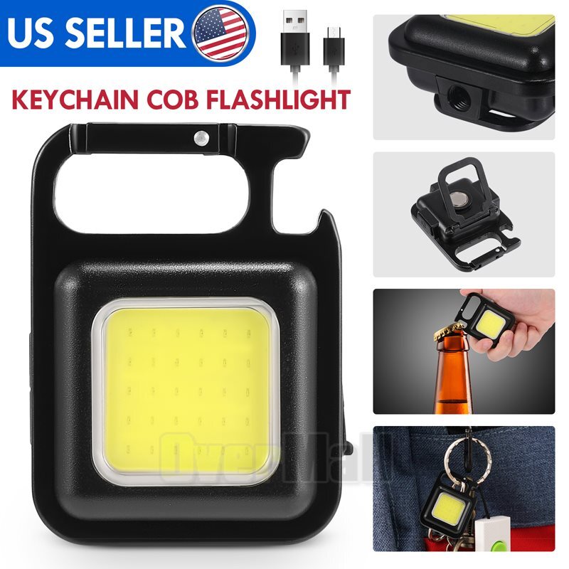 Portable USB Rechargeable LED COB Keychain Flashlight Work Torch Lamp Light