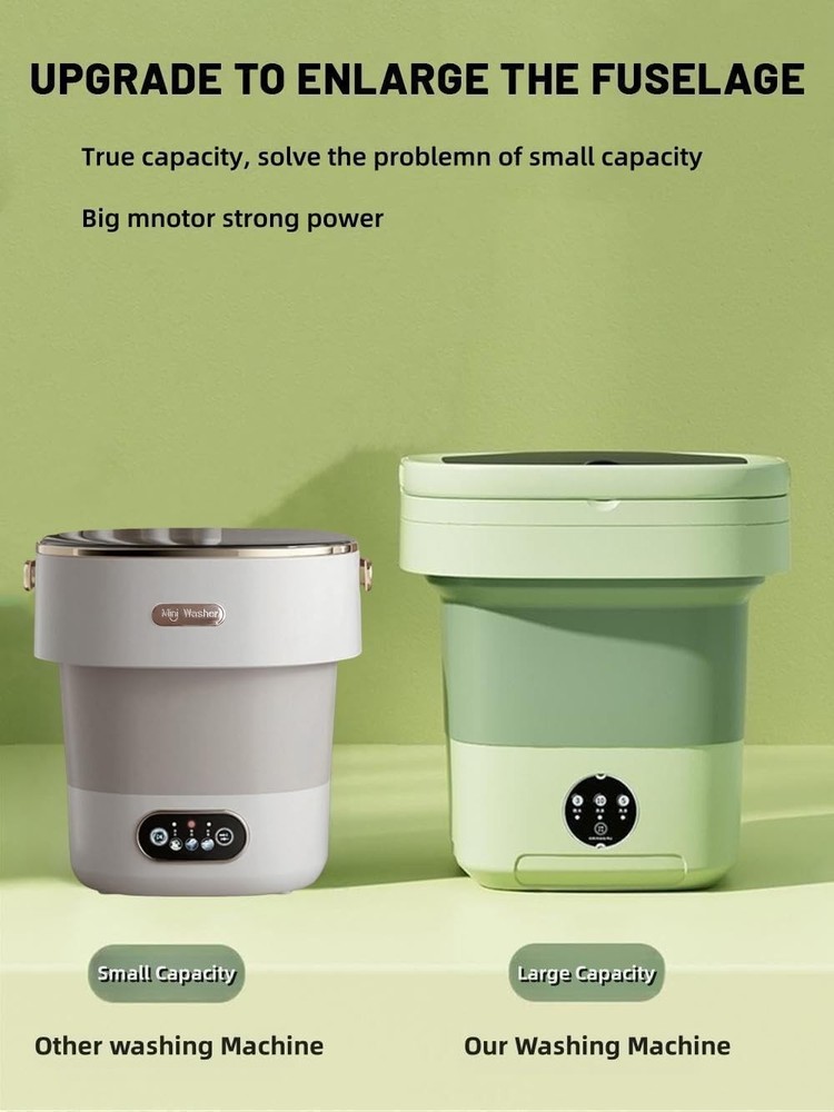 Portable Washing Machine, Mini Washer,15L Upgraded Large Capacity Foldable Washer.Deep Cleaning of Underwear, Baby Clothes and Other Small Clothes.Suitable for Apartments, Dormitories, Hotels. 【Portable Washing Machine】The body weighs only 3.5 lbs, compact and easy to carry, ideal for your apartment, dorm, hotel, travel or camping! Our portable washing machine is made of TPE and food-grade silicone material, protecting the health of you and your family! 【Please note】Portable washer does not have a dehydration basket. 【Easy to Operate】This foldable washing machine has a semi-automatic cleaning function, with 3-minute, 5-minute and 10-minute 3-mode timer buttons, allowing you to easily complete various washing requirements. (PS. Fill the washing machine with 2/3 of water to achieve better washing effect). 【Powerful Decontamination】This mini washing machine provides all-round imitation hand scrubbing, suitable washing speed, and strong decontamination. With blue light, it is very suitable for washing small clothes such as baby clothes, underwear or socks, keeping you and your family healthy! 【Not recommended for large clothes】 【Folding Design】This small portable washing machine cleverly adopts a foldable design, which measures 12.5x12.5x13.5 inches when unfolded and 12.5x12.5x6 inches when folded. Easy to store, it can be easily placed between shelves or under the bed without taking up too much space in your home. 【100% Satisfaction Guarantee】 We are always committed to providing our customers with higher-quality products and services. If you have any questions, please contact us, we will provide you with satisfactory customer service. Contact Us - Log into your Amazon account > select "Your Orders" > find the order ID > click "Contact Seller".
