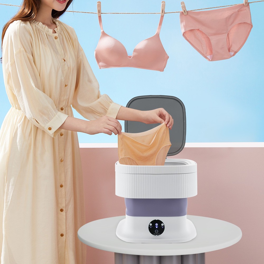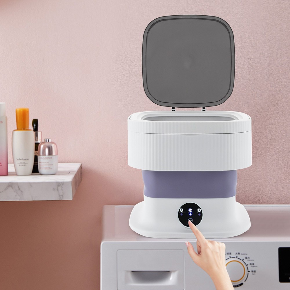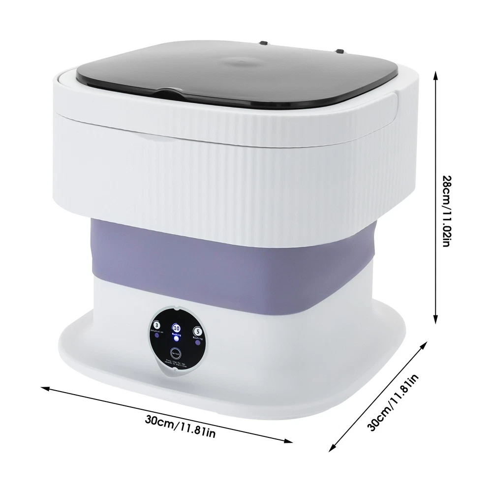Portable Washing Machine, Foldable Washing Machine, Mini Washing Machine Description With a compact size, lightweight, foldable design, and a turbine core, this portable washing machine is convenient to store while showing a strong cleaning performance, making it suitable for rentals, travel, or dorms. With three washing modes to choose from, it's easy to operate and meets your different laundry needs, making laundry less of a burden and making it an ideal choice for washing clothes in today's modern and fast-paced life. Key Features Build to Last: The high-quality PP and PTE are non-toxic and sturdy, giving the product high hardness, long service life, and good resistance to corrosion, wear, and tear. Embrace a Healthier Life: It can be the second washing machine at home for washing close-fitting clothes separately to avoid cross-infection. Thoughtful Design: The product adopts a simulated hand-washing wave wheel that can rotate in both directions, combined with precise washing speed, to effectively remove stains while gently flipping clothes, reducing clothing entanglement. It can also safely clean delicate small clothes such as silk and chiffon. Large Capacity: The 2.64gal capacity provides enough space to wash underwear, short sleeves, and other small loads, ensuring you can wash multiple loads at the same time for greater efficiency and a relaxing laundry experience. Easy to Carry: The hidden carry handle and the lightweight (4.63 lbs) allow you to easily carry it and the clothes inside for drying. Excellent Cleaning Performance: The product uses a high-quality turbine core and pure copper motor to provide 40W power and 320rpm speed, providing the product with excellent and stable cleaning performance. With it, you do not need to wait in line at the laundromat or spend much time washing clothes by hand. Flexible Time Setting: From quick wash to deep wash, this product features 3 smart time modes for you to choose from, meeting the washing requirements of different types of laundry. Space Saving: The foldable design and 11.81*11.81-inch footprint allow the product to be stored in cabinets and other places without taking up much space. Ideal Gift: Its compact design and practical functions make it an ideal housewarming gift for your friends, colleagues, and families. Customer Service: We aim to provide quality products and services. If you have any problems, please feel free to contact us. We will reply and solve the problem for you as soon as possible. Details Drainage Pipe: With it, you have the convenience and flexibility of being able to lead the water to the drain or sink. In addition, the slot at the bottom allows you to hide the drainpipe when it is not in use, making it neater. Suction Cups: Four suction cups under the bottom can firmly fix the product on the ground or table, and prevent it from slipping and moving during use. Drain Basket: You can install the machine inside after emptying it of water and put your wet clothes inside to dehydrate them so they can dry faster. Application The product can be used to wash bath towels, T-shirts, underwear, panties, socks, baby clothes, small toys, etc. It is suitable for families, apartments, dormitories, and RVs. How to Use Add the appropriate amount of water and clothes to be washed, then add a small amount of detergent (not included). Select the appropriate time mode. Drain out the dirty water and fill it with fresh water for rinsing. Put the rinsed clothes into the washing machine for dehydrating. How To Fold/Unfold the Machine Opening: Take out the washing machine from the package, fix four suction cups on the ground or tabletop, and then lift the product. Folding: Take out the items and drainage basket, then press down the product. Specifications Color: Purple Material: PP, PTE Style: Modern Mount Type: Free Standing Assembly Required: Yes Plug Type: US Standard Power Source: Corded Electric Control Type: Touch Operation Mode: Semi-automatic Motor Type: Pure Copper Motor Adapter Input: AC100-240V 50/60Hz Adapter Output: DC12V 2A Capacity: 10L/2.64gal Power: 40W Rotation Speed: 320rpm Time Setting: 2min, 5min, 10min Power Cord Length: 1.5m/4.92ft Drainpipe Length: 30cm/11.81in Folded Product Size: 30*30*14cm/11.81*11.81*5.51in Product Size: 30*30*28cm/11.81*11.81*11.02in Package Size: 31*31*16cm/12.2*12.2*6.3in Gross Weight: 2.3kg/5.07lbs Net Weight: 2.1kg/4.63lbs Package Included 1* Portable Washing Machine 1* Adapter 1* Drainpipe 1* Drain Basket 1* English Manual Other Needed Accessories Notes Please check the size carefully before ordering. Please note that it is not suitable for jeans, long skirts, bathrobes, and other bulky clothes. Please read the manual carefully before using it. Please note that it is a small washer but not a dryer. Using the drain basket can shake off excess water and keep clothing from dripping, but the clothing is still damp and the washer does not have a drying function. Please fill the washing machine with 2/3 of water to achieve a better washing effect. Please allow the slight color difference caused by the shooting light and 1-3cm error due to manual measurement, and make sure you do not mind before you order. Payment Delivery details Terms of sales About us Contact us Payment We accept ebay payment 。 Fees such as import duties, taxes are not included in the item price or shipping costs. These charges are the buyer's responsibility. Delivery details Shipping: 2-9 working days to: USA Terms of sales We maintain high standards of excellence and strive for hundred percent customer satisfaction. Feedback is very important to us. We hope that you contact us immediately before you give neutral or negative feedback, so that we can address your concerns. It is impossible to address issues if we do not know about them! About us Your satis faction is our ultimate goal. We work hard to earn your trust and future business. Our certified technicians have tested each item before shipping. The unit comes with