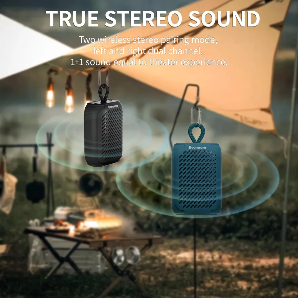 Boomcore Portable Bluetooth Speakers, Waterproof Small Speaker with Stereo Sound, 12H Playtime, Wireless Bluetooth Speaker IPX7 for Outdoor, Shower - Black Music Anywhere, Anytime: The built-in 1800mAh rechargeable cell in the boomcore ultra portable Bluetooth speaker can provide up to 12 hours of playback at 50% volume on a single charge. Take your music with you wherever you go with Boomcore portable Bluetooth speakers. It is perfect for outdoor events and adventures. Brilliant Music: The Boomcore portable music speaker with Bluetooth has a 1.69-inch NdFeB driver, a symmetrical magnetic circuit with a bifilar coil and exclusive technology that produce incredible sound. The wireless Bluetooth speaker can be connected to phones, tablets, PCs, or any other Bluetooth device. Small Speaker, Big Audio: The Boomcore portable Bluetooth speaker delivers surprisingly big audio and brilliant sound from its ultra-compact size. You can enjoy the surround stereo sound with 2 mini speakers by pairing the TWS function, it's an auditory experience that's truly unparalleled. Tough & Weather-Resistant: Engineered to handle rough use and adverse weather conditions, this waterproof speaker with rubber coating features an IPX7 rating for protection against water immersion. The waterproof small Bluetooth speaker with a carabiner clip is an ideal choice for outdoor events and is perfect for use at parties, pools, on the beach, while camping or hiking, and more. Advanced Safety Features: This portable hands-free music speaker is extremely safe, even when you use it when you take a shower, because it never overheats. Features a unique dynamic following voltage regulation technology to dynamically adjust according to the audio signal. This makes the small Bluetooth speaker a perfect gift for your family and friends, both indoors and outdoors. SHIPPING Domestic Buyers - We have confidence in our products, but if you are not fully satisfied please contact us within 30 days of purchase and you will get full refund. - We ship within 3 business days of payment, usually sooner - We offer FREE shipping on all orders! - We only ship to the lower 48 states, no APO/FPO addresses or PO Boxes allowed International buyers – please note: Import duties, taxes, and charges aren't included in the item price or postage cost. These charges are the buyer's responsibility. - Please check with your country's customs office to determine what these additional costs will be prior to bidding or buying. * Order Cancellation Policy ** You can return a product for up to 30 days from the date you purchased it. 1. The seller reserves the right to cancel the special case only due to eBay cancellation fee. 2. The decision of seller is the final. 3. The seller will respond to the cancellation request within 2 business days. Please wait for the result of cancellation. 4. In case the cancellation is not completed by some reasons, the buyer can follow the options below to get the refund. 4.1 The buyer can reject the item when it arrives. 4.2 The buyer can send the item back to the seller within 30 days If the buyer receives item (USA Shipment ONLY). The seller will provide the FREE return label to the buyer when the buyer opens " Return Item" case on eBay by using the reason as "Change my mind" ONLY. 5. When buyer has placed the order. The order will be processed and completed by automatic warehouse system within 5 minutes. In case that buyer sends the cancellation request after 5 minutes of placing the order, the request will be rejected. **Sending direct message to cancel the order is not allowed for every case.* Return Policy For the return case - If buyer would like to return the items for refund or replacement, please CONTACT SELLER to receive the free return label from seller. The refund or replacement will be processed with the tracking number of return label which is provided by seller only. The other ways of return which are not approved by seller will not be processed for the refund or replacement.