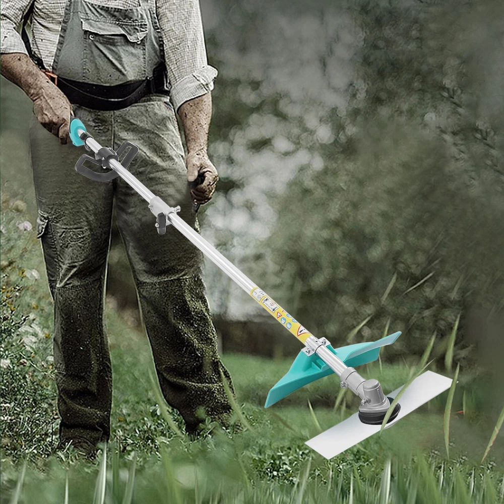 Specification Material: Plastic, Aluminum Blade Material: Alloy Plug: US Standard Color: Green Battery Voltage: 24V Battery Capacity: 6Ah Speed: 11000 rpm Motor Power: 1300W Noise: ≤50db Packing Size: 102*14.5*25cm/40.15*5.7*9.84in Pole Length: 1.7m/5.57ft Blade Size: 12*3.5cm/4.72*1.37in Gross Weight: 6kg/13.22lbs Net Weight: 5kg/11.02lbs Package Included 1* Electric Lawn Trimmer 1* Pole 1* Grass Shield 1* Shoulder Strap 1* Power Connection Cable 1* Battery 1* Blade 1* Power Adapter 1Pair* Gloves 1* Goggles 1* Hat All Accessories Required for Installation Portable Weeder,Electric Lawn Mower Hand-held Shrub Orchard Pruning Machine Description Description With its built-in high-capacity lithium battery and powerful brushless motor, this electric lawn trimmer greatly improves working efficiency and comfort. Its double handle allows you to operate with even less effort and stability. The handle and switch are designed in one piece for easy start-up and operation. It will be your ideal choice. Key Features Good Heat Dissipation: The housing has many cooling holes for heat dissipation, which prevent motor burn-out caused by long-term use. Cordless Design: Its cordless design will not restrict the working position which allows it to be used in places without power, offering you great convenience. Low Noise: The brushless motor and multi-layer noise reduction technology make the sound as low as 50db when working, giving you a quiet working atmosphere without disturbing others' rest and work. Robust and Durable: It is made of high-quality plastic and aluminum, which are robust, hard-wearing, rustproof , and age-resistant , ensuring a long service life. Long Operating Time: It is equipped with a large-capacity lithium battery (6Ah), which can be used continuously for half an hour on a full charge. It can also be used with an external backpack power supply for long and large trimming jobs. Compact and Lightweight: The lightweight of 11.02 lbs, compact construction and detachable design makes the item not only convenient to carry and store but also easy to use for most people, making trimming an enjoyable experience. High Efficiency : It is equipped with a powerful brushless motor (1300W) with low energy consumption, high-temperature resistanc e, and a rotation speed of up to 11,000 rpm for efficient mowing work. It saves much more time and effort compared to traditional hand mowing. Easy to Install: This product is simple in structure and complete in the package. You only need a few simple steps to install it, which is very time-saving and labor-saving. Safety Protection : Gloves, goggles, and a hat are included in the package to provide all-around protection for your trimming work. Multifunctional : You can change the blade for your high branch saw, hedge trimmer, or grass-cutting head for multiple applications. User-friendly Design: The concealed switch at the handle is designed to be activated with a single click which avoids safety hazards and saves power. In addition, the tail button is convenient to remove the battery for charging, making it very practical and user-friendly. Excellent After-sales Service : We aim to provide quality products and services. If you have any problems, please feel free to contact us, and we will reply and solv e the problem for you as soon as possible. Details Sharp Blade : The blade is made of high-strength alloy, which is quenched and hardened in one piece, making it very strong, and sharp for good cutting performance. It is also highly resistant to corrosion. Shoulder Strap: This lawn trimmer comes with a wide shoulder strap, so you can carry it on your shoulder. This way, the operation will be more stable and help reduce vibration and fatigue. Practical Handles : It contains a non-slip main handle and an auxiliary handle that effectively balances the weight of the lawn trimmer and reduces hand fatigue. Its auxiliary handle position can be adjusted at will to suit your needs. Extended Pole: The 1.7m/5.57ft extended pole allows you to easily mow off high branches or hard-to-reach spots in a very safe and effective way. It also reduces back strain for more comfortable trimming work. Grass Shield: It is equipped with a grass shield to prevent the grass from splashing when mowing, making it more secure to use. Application It can be used in schools, green belts, parks, farms, pastures, orchards, backyards, and various other scenarios for mowing, trimming, and harvesting. Specification Material: Plastic, Aluminum Blade Material: Alloy Plug: US Standard Color: Green Battery Voltage: 24V Battery Capacity: 6Ah Speed: 11000 rpm Motor Power: 1300W Noise: ≤50db Packing Size: 102*14.5*25cm/40.15*5.7*9.84in Pole Length: 1.7m/5.57ft Blade Size: 12*3.5cm/4.72*1.37in Gross Weight: 6kg/13.22lbs Net Weight: 5kg/11.02lbs Package Included 1* Electric Lawn Trimmer 1* Pole 1* Grass Shield 1* Shoulder Strap 1* Power Connection Cable 1* Battery 1* Blade 1* Power Adapter 1Pair* Gloves 1* Goggles 1* Hat All Accessories Required for Installation Notes After use, the blade needs to be cleaned and stored in a dry place in time. Please note that external backpack batteries are limited to 24-volt batteries. Please note that the backpack battery is not included in the package. Please be sure to tighten the screws to ensure your safety as the screws may come loose when installing the blades. Please allow the slight color difference caused by the shooting light and 1-3cm error due to manual measurement, and make sure you do not mind before ordering. Dear friend, Welcome to my store . Wish you have a nice day and happy shopping. If you have any questions or more information about promotion, please leave me a message and we will reply to you as soon as possible. Thanks for your patience. Payment Delivery details Terms of sales About us Contact us Payment We accept ebay payment 。 Fees such as import duties, taxes are not included in the item price or shipping costs. These charges are the buye