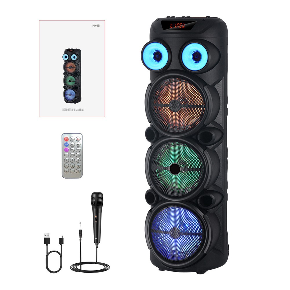 Portable Wireless Bluetooth Speaker 3* 8" Woofer Heavy Bass Sound With Mic Party Features: Triple 8-Inch Speaker Powerhouse Room-Filling Sound: Three precision-tuned 8-inch woofers deliver thunderous bass, crisp mids, and crystal-clear highs. Perfect for parties, outdoor events, or immersive home theater experiences. Seamless Multi-Device Connectivity 5-in-1 Playback: Stream wirelessly via Bluetooth 5.0 (PBX-831 model), plug in USB/TF cards, use AUX for MP3 players, or pair two speakers with TWS (True Wireless Stereo) for double the soundstage. Rugged & Stylish Build Premium ABS Construction: Sleek black finish with durable, shock-resistant design. Compact yet powerful (11.22"W x 11.02"D x 35.75"H) and lightweight (16.2 lbs) for easy indoor/outdoor setup. Universal Voltage Compatibility Works Worldwide: Supports 110V-240V (50/60Hz) input—ideal for international use. Features a DC5V/1A USB output to charge your devices while playing music. Effortless Control & Portability User-Friendly Design: Simple buttons for volume, mode switching, and track control. Built-in handles for easy transport to BBQs, camping trips, or backyard gatherings. Specifications: Material: ABS Color: black Bluetooth model: PBX-831 Speaker: 8 inch *3 Function: Bluetooth, TF card, USB mode, AUX, TWS Input: 110v-240v 50-60Hz Output: DC5v 1A Size:11.22*11.02*35.75in Weight:16.2LBS Package Included: 1 x Portable Speaker 1 x USB Charge Cable 1 x Wired Remote Control 1 x Remote Control 1 x User Menu Shipping Payment Return & Refund policy Feedback Customer Support - Contact Shipping FREE SAME BUSINESS DAY MONDAY- FRIDAY SHIPPING FROM USA. All orders and payments received before 4PM EST (1PM PST) will be shipped the same business day. All other orders within 1 business day. No shipping on Weekends or US Public Holidays. No responsibility for any custom duty Shipping information will be updated when available. Payment We accept payment via PayPal. Use PayPal at checkout to pay with credit or debit. Immediate payment is required. Shipping will be arranged within 1 business day once payment is cleared. Return & Refund policy 1.We stand behind our items and offer 60 days warranty. All items are in new and working condition unless specified otherwise elsewhere in the description. 2.All Returns - defective or otherwise - MUST BE PREAUTHORIZED to guarantee refund or exchange. Please contact us to get an authorization and return address. 3.Buyer agrees to pay for the cost of re-shipment for undeliverable or wrong addresses. 4.Buyer is responsible for Return Postage as well as a 20% restocking fee if return/replacement is not a result of our mistake such as wrong item. 5.Replacement or Refund will be made upon receipt of the returned item. Please include tracking number so we can process ASAP. If you do not wish to wait for a replacement, please repurchase the item. 6.ALL REFUNDS will be processed via PayPal. Please double check via PayPal history and transaction for confirmation. PayPal will send it back to whatever you used to pay within 3-5 days. Feedback We strive to provide the best products and services. If anything about your transaction did not meet expectations, please CONTACT US and give us the opportunity to make things right. We are always here to help. Customer Support - Contact Please do not hesitate to CONTACT US. You can message 24/7 on eBay for all questions and inquiries. We will get back to you within 1-2 business days at the latest.