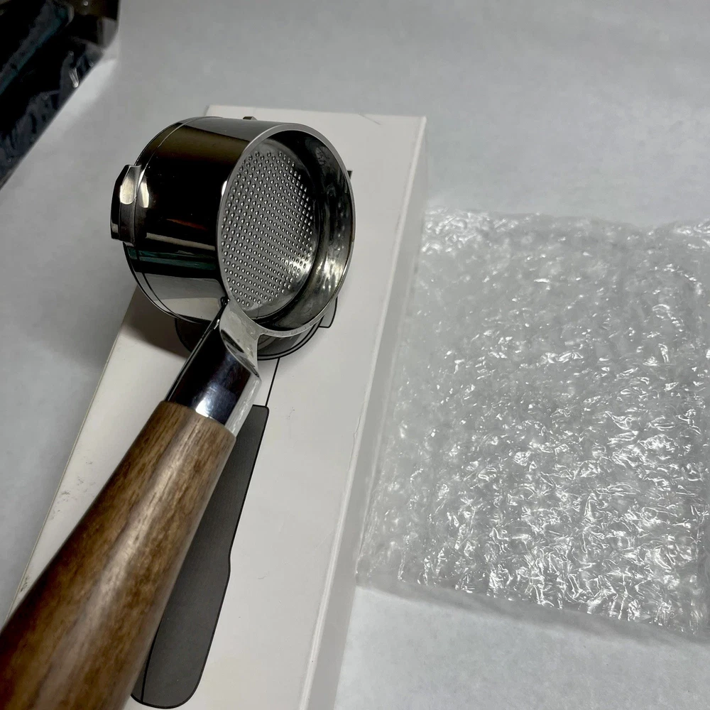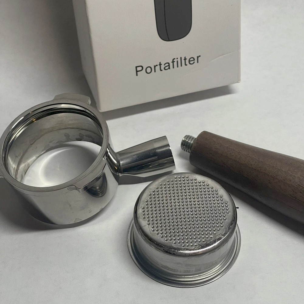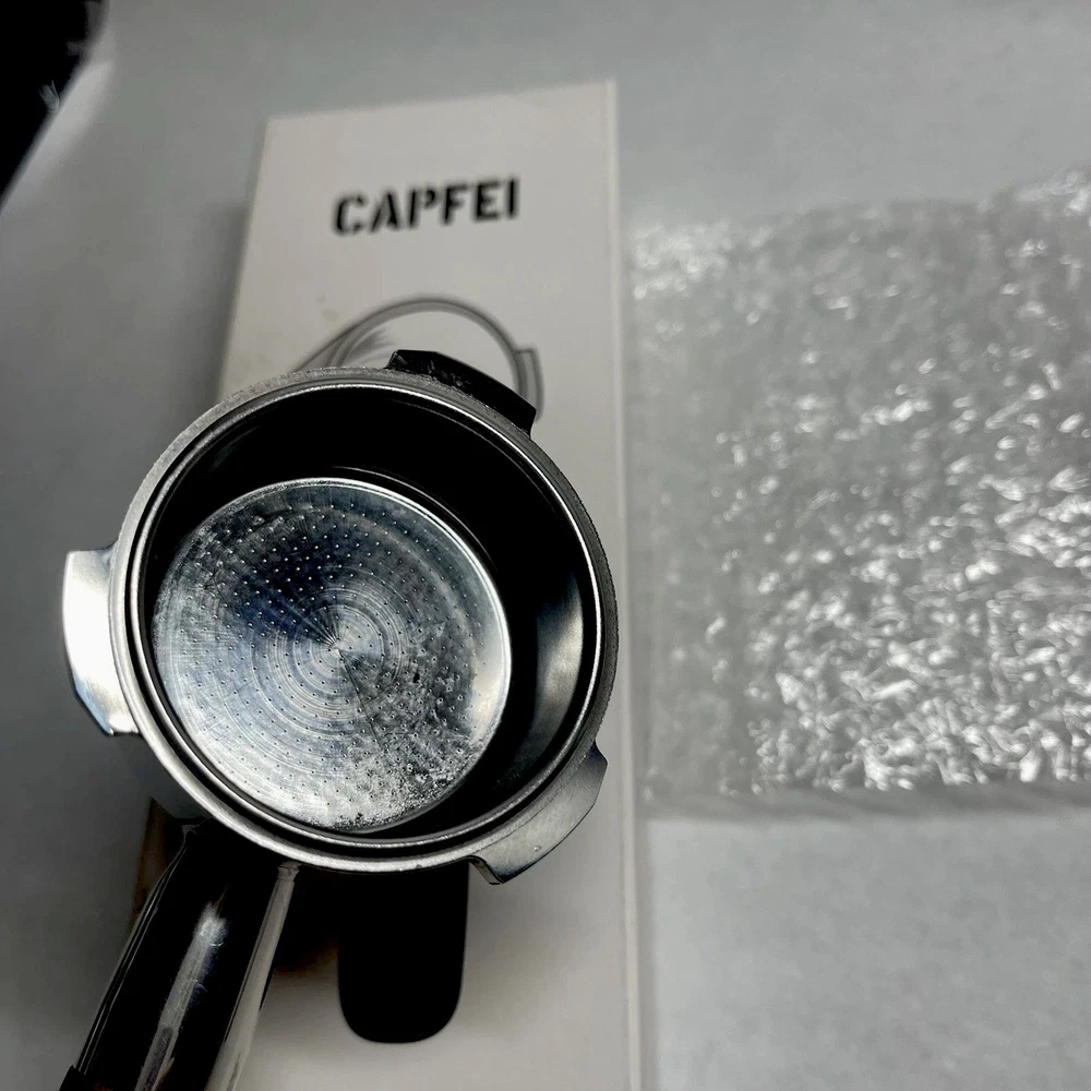 The 51mm Bottomless Portafilter 3 Ears 4mm Prong Thickness by CAPFEI is designed to fit Wirsh and Casabrew espresso machines. Made of stainless steel and featuring a metal and wood handle finish, this portafilter is easy to clean and suitable for use in making espresso. With dimensions of 10" in height, 3.5" in width, and 2" in depth, this portafilter is a practical and durable unit for coffee enthusiasts looking to enhance their home coffee-making experience.
