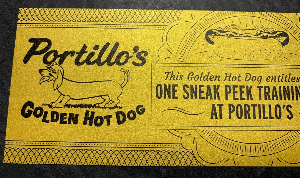 Advertising coupon Portillo’s restaurant with a golden hotdog. This has a dachshund wiener dog logo on it. The coupon was good for one sneak peek training meal however, I do not think this is valid. I have no idea how old this item is it almost looks like it would’ve been newer, but it has an older look to it. If someone has a clue, please let me know. I know this restaurant is been around for quite a number of years and it has been growing in the size nonetheless, what a cool piece of history from the restaurant industry and if you love a dachshund dog it’s. . .. Member BCCA NABA AAAA . We will combine ship just wait for an invoice . please note I am offering this with a friendly cost of shipping as I will use a stiffener in an envelope and I will pay for this to ship not machinable . However no frills theres no tracking . I am trying this in order to save you shoppers postage money. With rising trackable shipping costs .My assumption is that you prefer the cheaper method measures aprox 6 x 2 1/2 “ . 23lot20Ax . ....invbook406