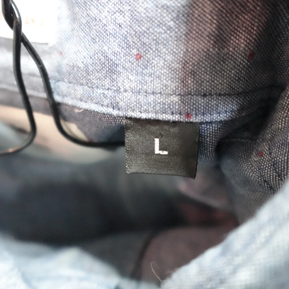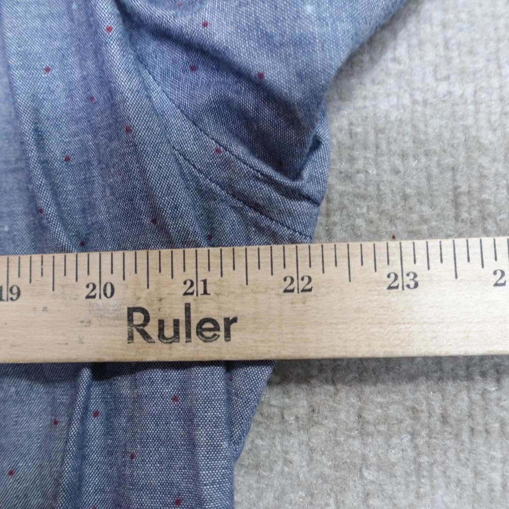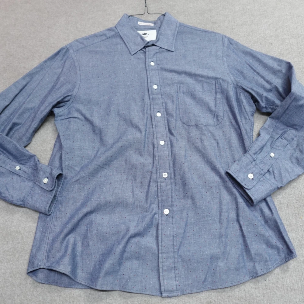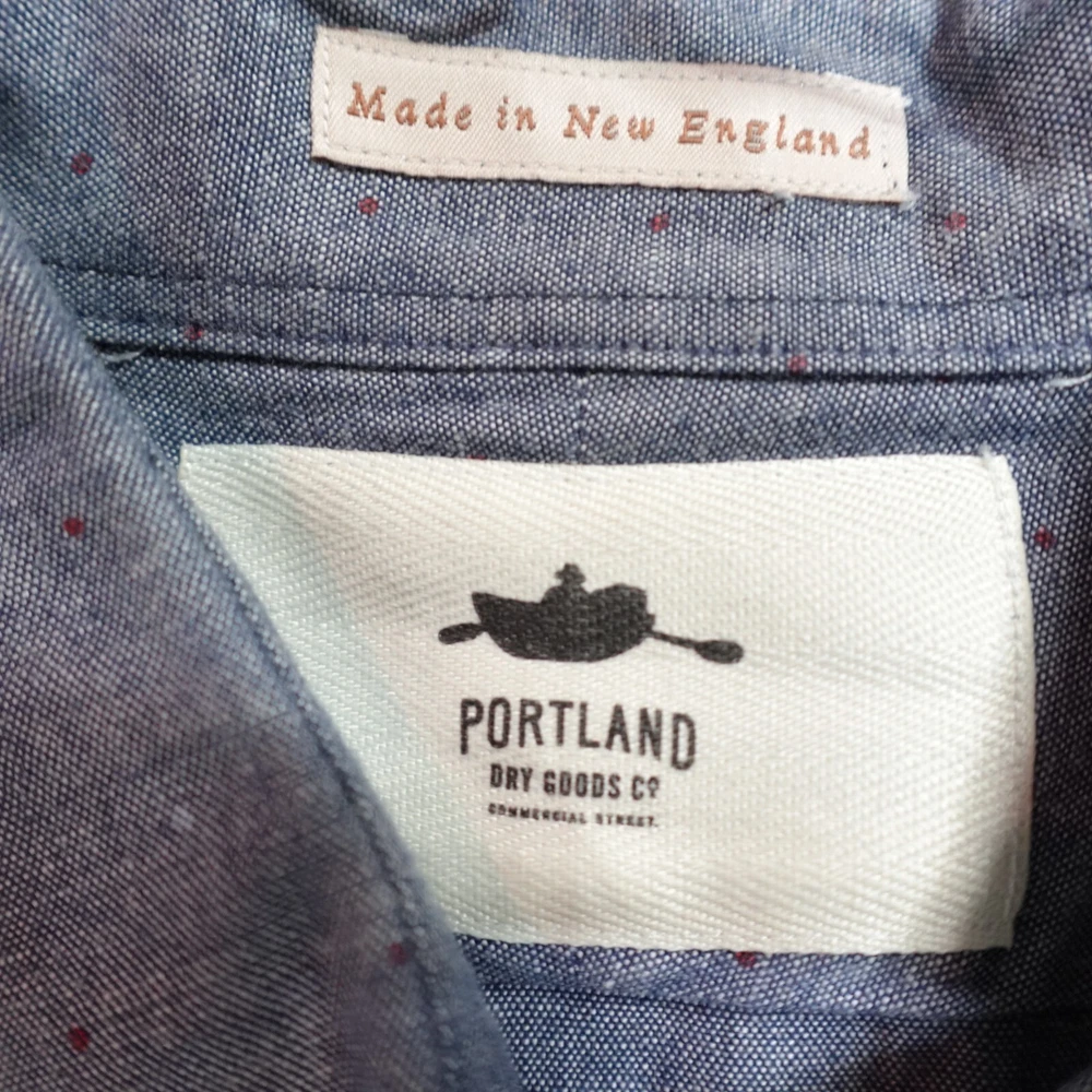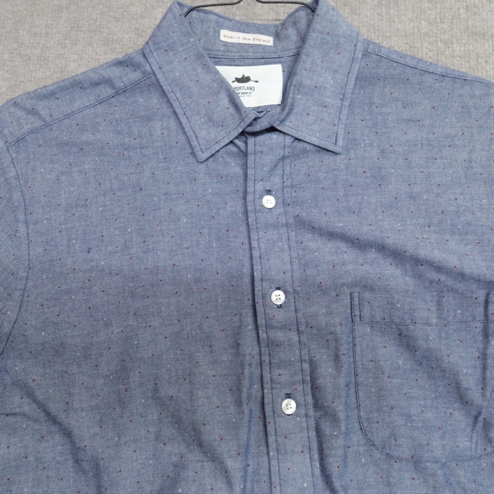 Portland Dry Goods Shirt Large Blue Chambray Polka Dot Made in New England