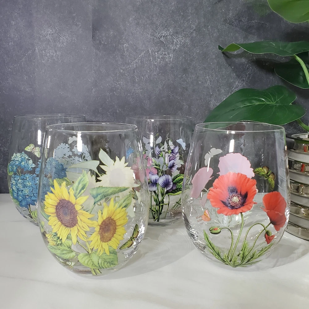 Portmeirion Botanic Garden Stemless Wine Glasses 19 oz Set of 4 No cracks or chips Helianthus Annuus - Sunflower Hydrangea Macrophylla - Hydrangea Lathyrus Odoratus - Sweet Pea Papaver Rhoeas - Peony Thank you for viewing our products. PRODUCT SOLD AS IS. Please Message With Questions Prior To Purchase. If you have an issue with any of our items please reach out to us prior to contacting eBay. Thanks! Please note: We do sell new and used items. Our used items are pre-owned / pre-loved & may show signs of wear. Please view all photos for details, size, & imperfections as they are a form of the descriptions in addition to what is stated in the description section. We will do my best to inspect each item to find the best quality items possible. If an item is sent to you NEW / SEALED and you open it or remove the tags, it is NO LONGER ELIGIBLE FOR RETURN. Opened items / Removed tags - Means the item is NO LONGER in its original state and can no longer be sold as NEW. -Thank you for your understanding We are often asked about shipping cost. We are excited about your purchase and take pride in your package arriving to you undamaged . We wrap and cushion all necessary items prior to shipping which adds weight to your package. Unfortunately, this is not optional. Thank you for your understanding. We do not accept returns or issue refunds however in the event we do accept your return or issue a refund we do not reimburse your original shipping fee. Due to how eBay handles international shipping we do not accept any international returns. Thanks again!
