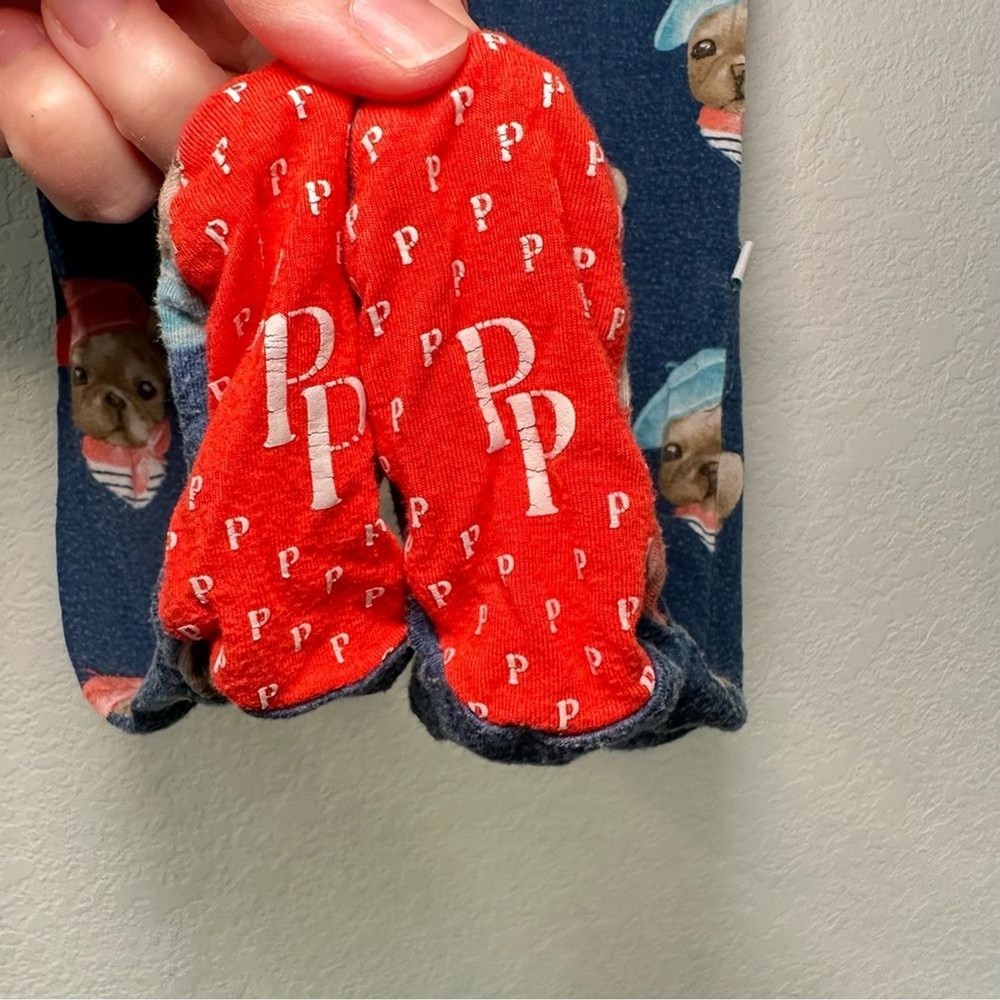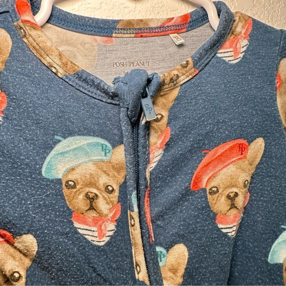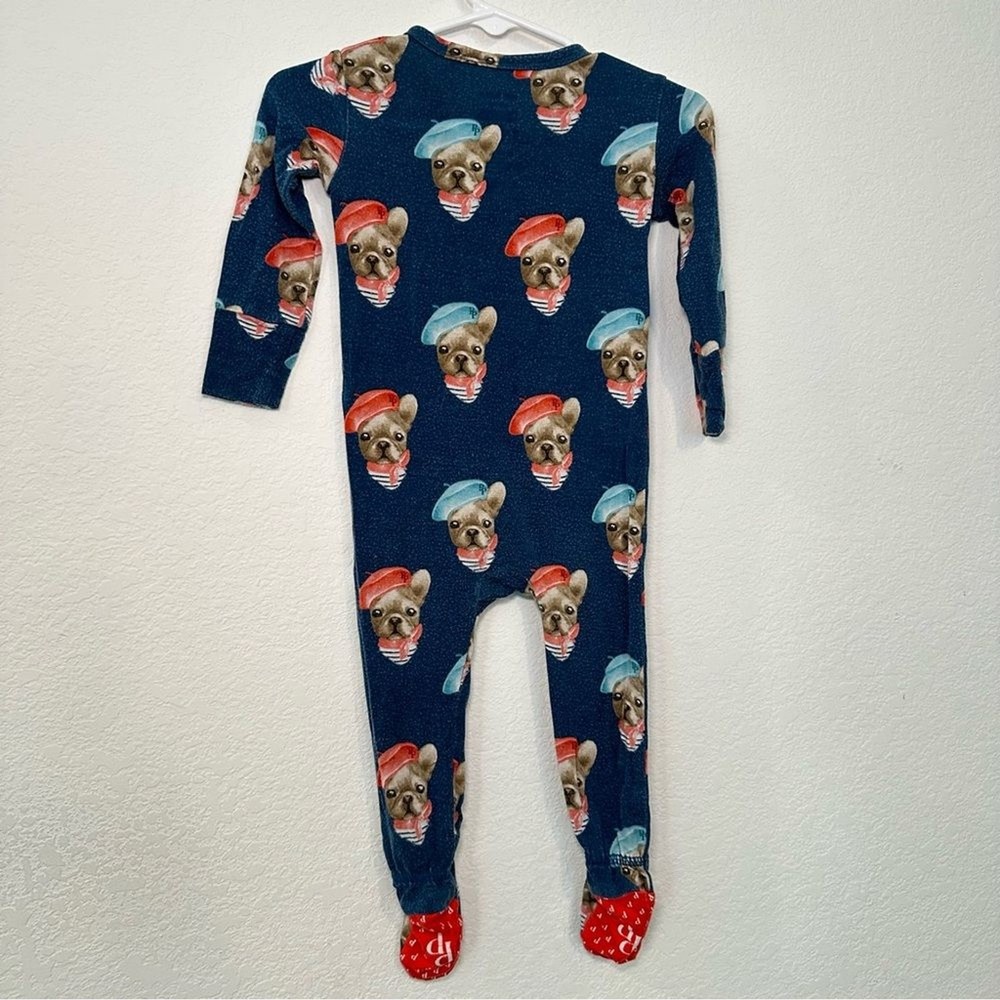 Charming one piece with cute dog and red beret design. Soft and comfortable for little ones, made of bamboo fabric. Fair condition due to wash wear. Check out my other listings to bundle and save!