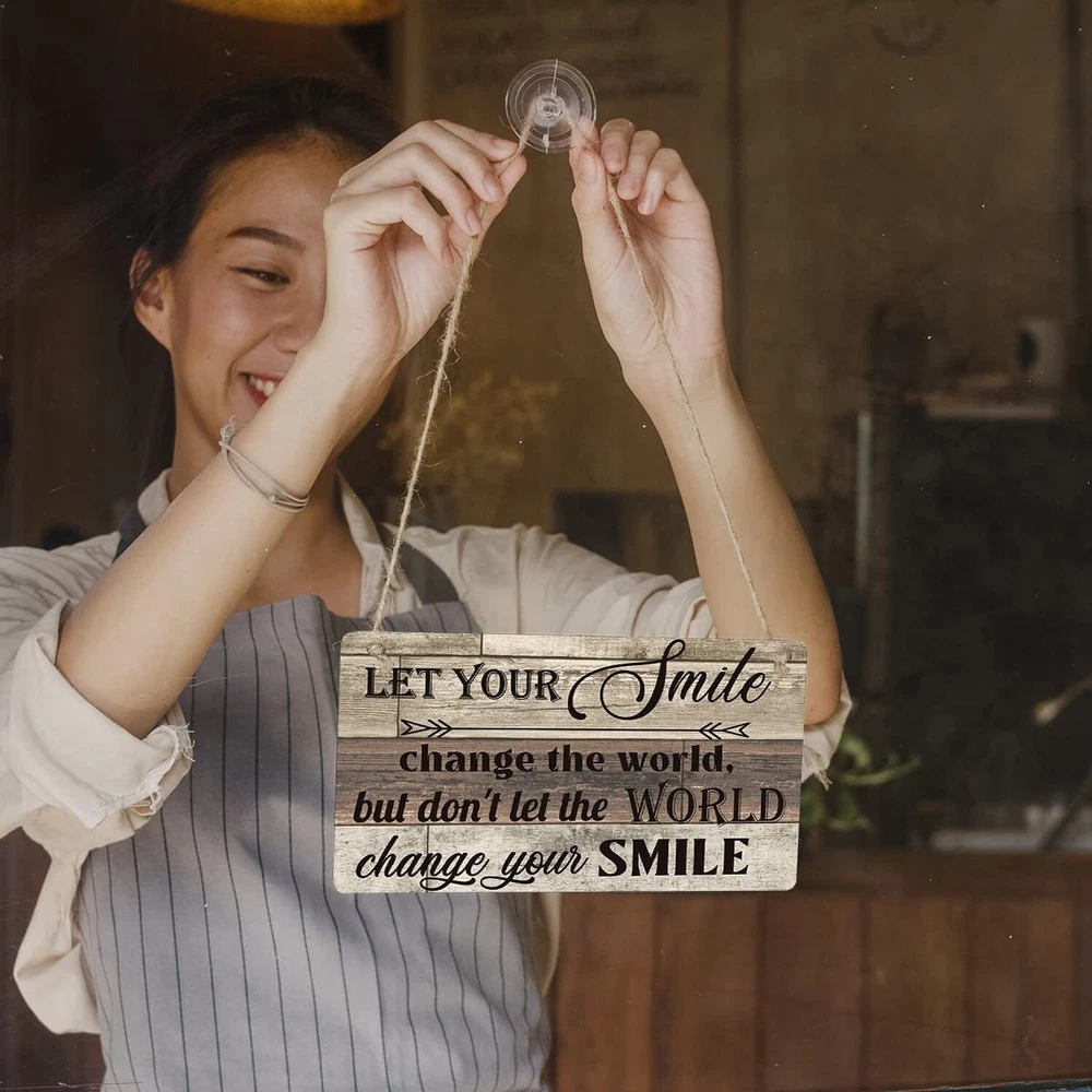Positive Sign Farmhouse Let Your Happy Change The World Wooden Hanging Sign Rustic Retro Wall Art Decor Home Decoration 12 x 6 Inches Product Details Color: Keep happy Brand: Qious MPN: decorative plaque UPC: Does not apply EAN: Does not apply Color: Keep happy Brand: Qious Material: Engineered Wood, Wood, Ceramic Theme: Family Recommended Uses For Product: Office Mounting Type: Wall Mount Product Dimensions: 12"L x 6"W Shape: Rectangular Item Weight: 0.1 Kilograms Style: Versatile Pre-printed: Let Your Smile Change The World Included Components: Hanging holes and twine Item Weight: 3.52 ounces Manufacturer: Qious Country of Origin: China Item model number: decorative plaque Sign Size:Measures approximately 6"x12". Premium Wood Sign: Made from compressed wood raw material MDF. Each sign has 2 pre-cut hanging holes and a length of twine. It is an attractive and versatile country style. Easy Hanging: Installation is extremely easy. Comes with hanging holes and twine so it's ready to hang. Attractive Appearance: This meaningful decoration is suitable for someone who means something to you. Funny signs will make the recipient happy. Natural wood rustic sign, with excellent texture, can hang beautifully. For Gift Giving:Our wooden signs are the perfect gift for loved ones or as a special treat for yourself. It works great, looks great and adds fun to any space in the home, office, classroom, kitchen, bathroom, study, and more. For Gift Giving:Our wooden signs are the perfect gift for loved ones or as a special treat for yourself. It works great, looks great and adds fun to any space in the home, office, classroom, kitchen, bathroom, study, and more.