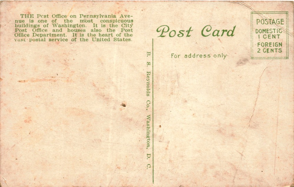 MAKE AN OFFER. THE MORE YOU BUY THE BETTER DEAL I WILL ACCEPT The postcard features an image of the Post Office located on Pennsylvania Avenue in Washington, D.C. This building serves as the City Post Office and also houses the Post Office Department. The structure is a prominent landmark in Washington and plays a central role in the vast postal service of the United States.Washington, D.C.