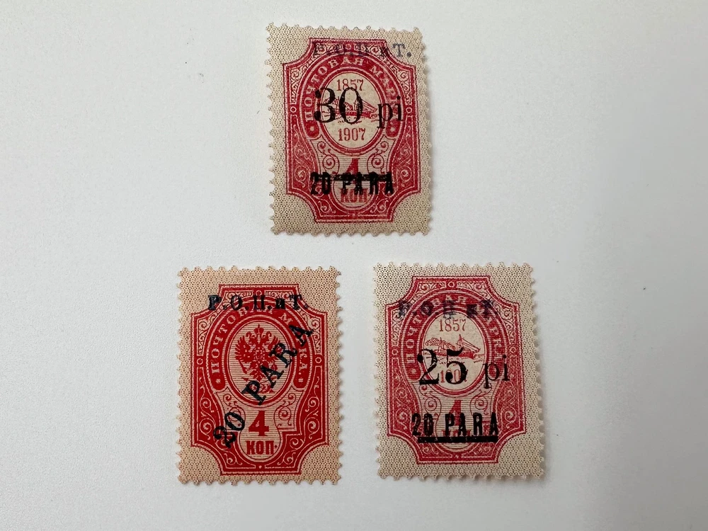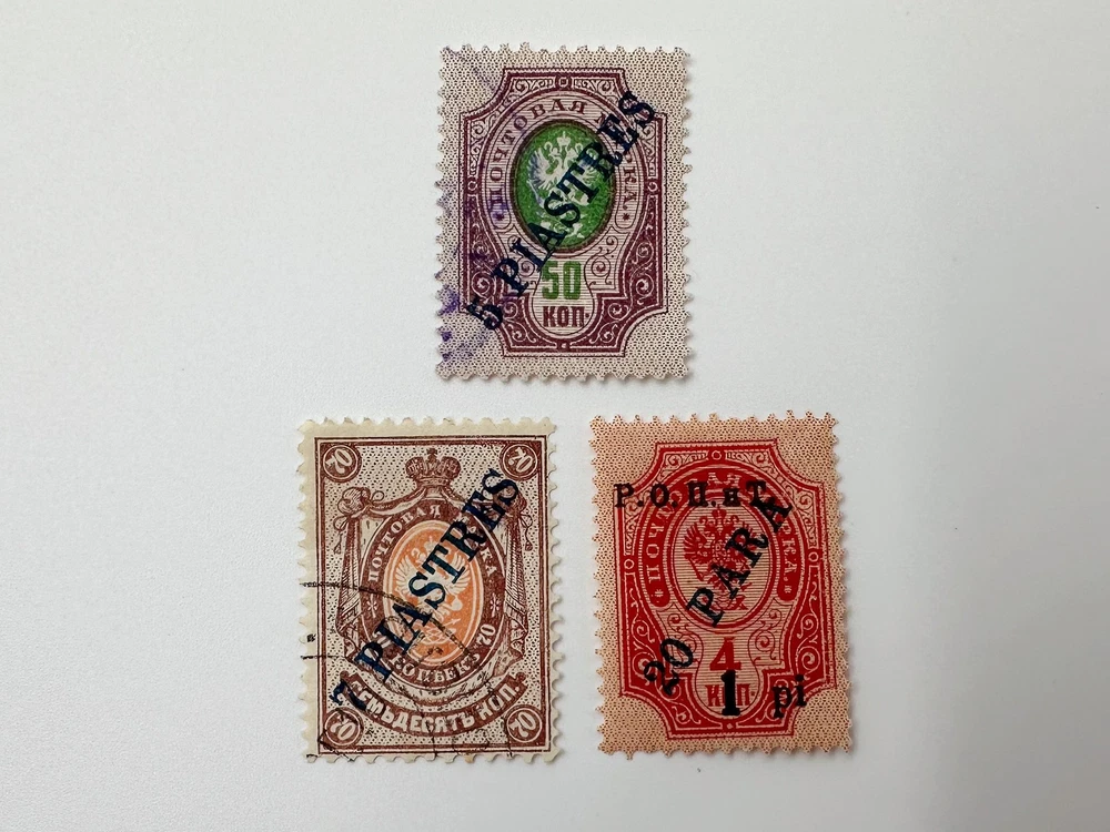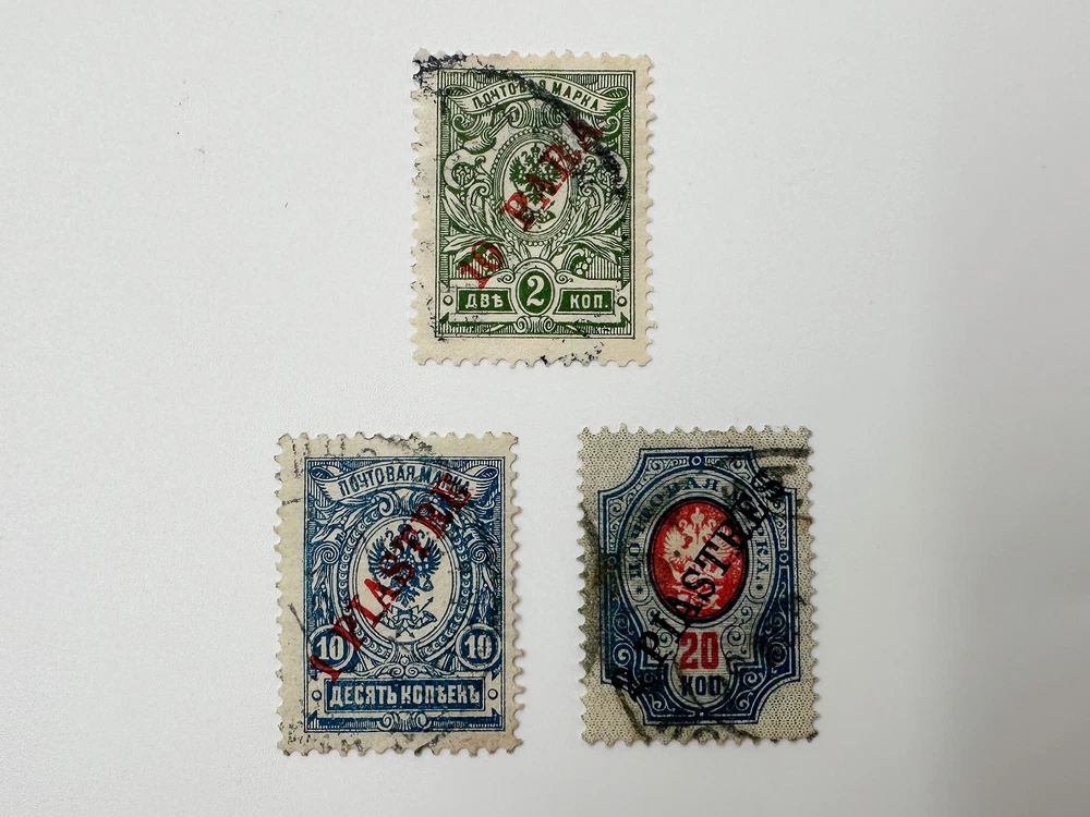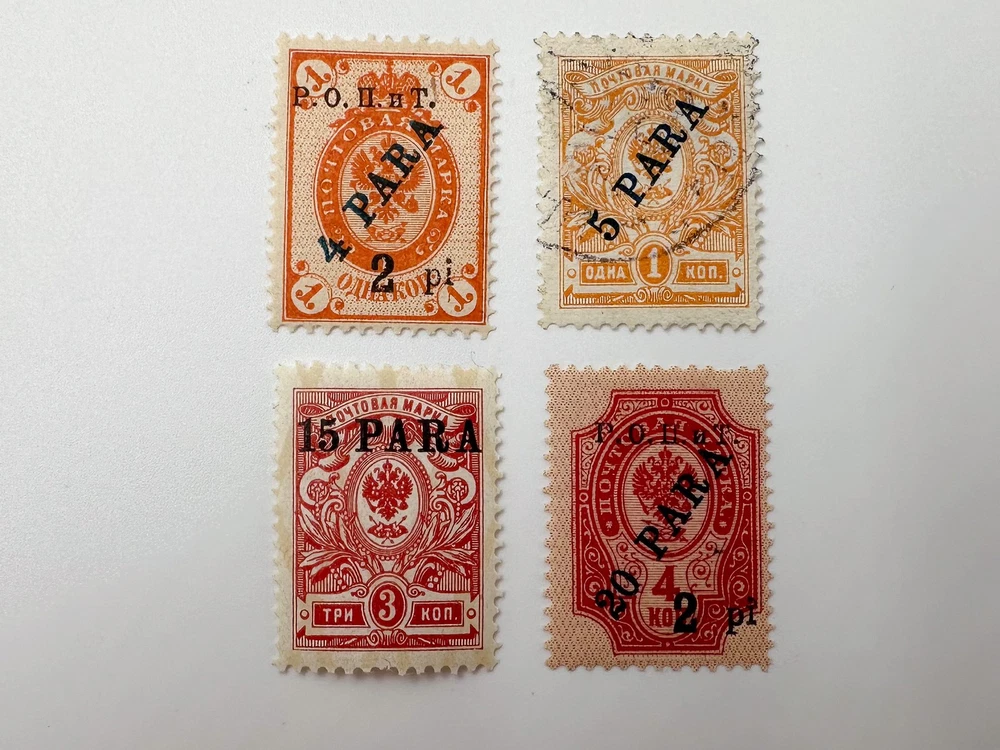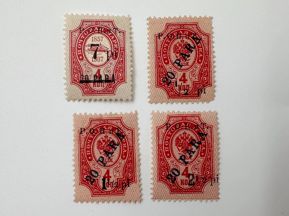 Various issues from the Russian Empire and the Russian Civil War period (circa 1908-1922). Many of them are classic imperial stamps of Tsarist Russia, featuring the double-headed Tsarist eagle and denominations in kopecks (Russian: KOP) or rubles (Russian: RUB). - Most of the stamps (red, blue, green) are standard issues of the Russian Empire from 1908 to 1912. The face value varies from 1 kopeck to higher denominations in rubles. - Some stamps have additional overprints, such as "20 PARA". These overprints indicate that the stamps were used in Russian post offices in the Ottoman Empire (Levant) or were local reprints from times of civil war or military intervention in various regions, including Estonia (Revel). • All stamps are original - photos are part of the description. • I offer combined shipping when you purchase 2 or more items. • Don't hesitate to message me with any questions. Thank you for your interest - check out other lots in the store for more philatelic treasures!