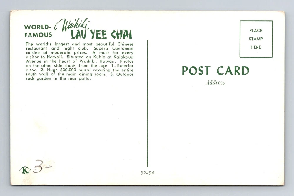 Postal antigua, vintage de Waikiki HI-Hawaii, Lau Yee Chai