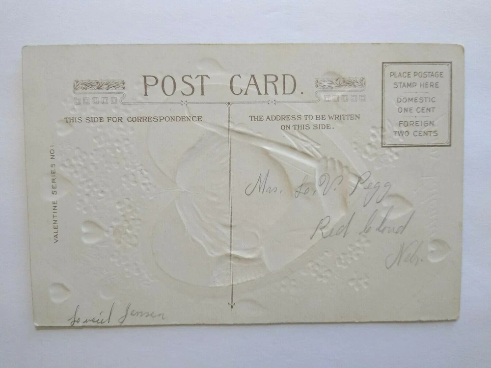 Unit of Sale: Single Unit Size: Standard (5.5 x 3.5 in) Artist: Unknown Postage Condition: Yes Number of Items in Set: 1 Era: Pre-War (Pre-1914) Country/Region of Manufacture: Unknown Material: Paper Estado del artículo: Usado Year Manufactured: 1910 Subject: Artist Original/Licensed Reprint: Original Type: Printed (Lithograph) Theme: Art, Fantasy, Holiday, Greetings Occasion: Valentine's Day Features: Embossed, Divided Back Brand/Publisher: Unknown Custom Bundle: No Time Period Manufactured: 1900-1919