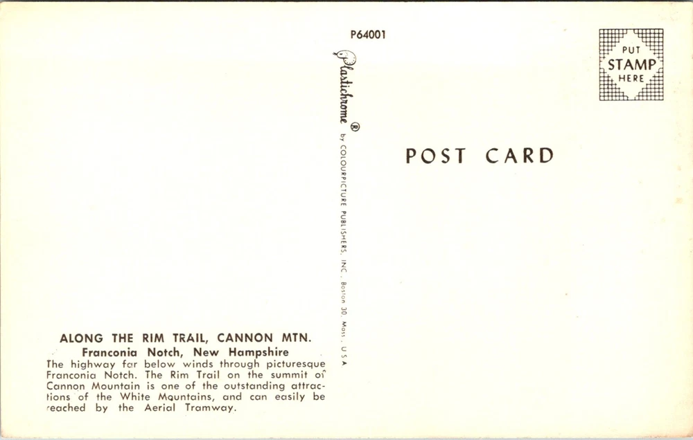Postcard Along the Rim Trail Canon Mountains Franconia Notch NH New Hampshire Be sure to visit our Ebay store at North Coast Flipper for even more great deals!