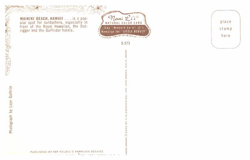 Signed: No Region: Hawaii Era: see features for era Original/Licensed Reprint: Original Size: Standard (5.5 x 3.5 in) Unit of Sale: Single Unit Country/Region of Manufacture: United States Continent: North America Type: Printed (Lithograph) Postage Condition: n/a Country: USA City: Honolulu - Waikiki Material: Paper