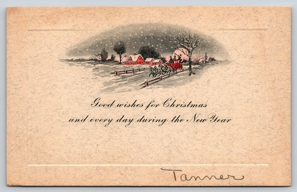 Postcard Good Wishes for Christmas and Every Day During the New Year Sleigh -- This is a standard sized postcard measuring about 5.5 x 3.5 inches. -- Postcard scanned at 600 DPI, see photos for details. * International Buyers : All international sales ship via Ebay International Shipping . Final cost of shipping is determined by Ebay, not the seller.