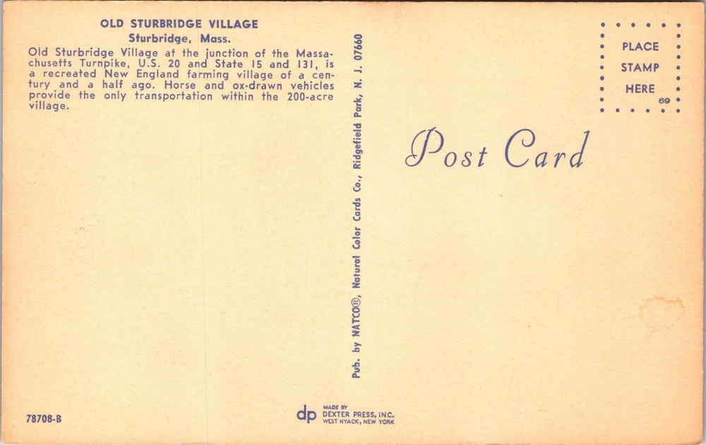 Postcard Old Sturbridge Village Sturbridge MA Massachusetts Be sure to visit our Ebay store at North Coast Flipper for even more great deals!
