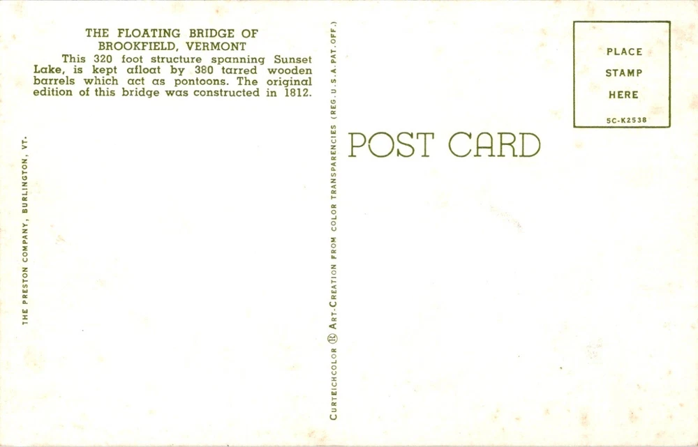 Postcard The Floating Bridge of Brookfield, VT Vermont Be sure to visit our Ebay store at North Coast Flipper for even more great deals!