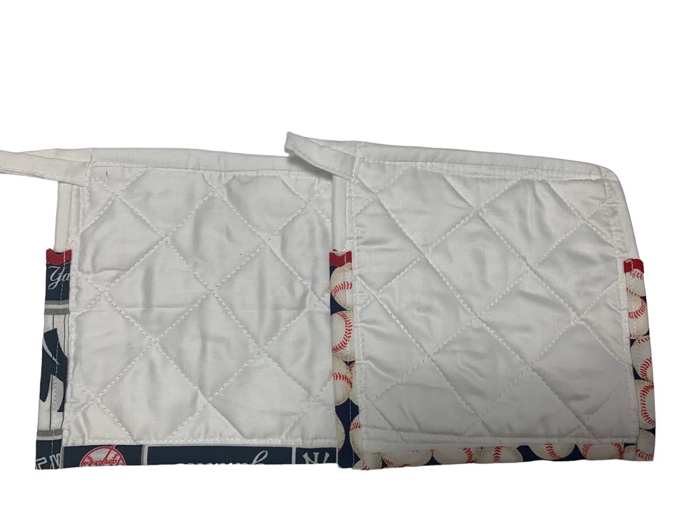 Pot Holder Set 2 Kitchen Barbecue Dads Day Gift Hand Made NWT. One is team logo print, 2nd is baseball print. Trimmed in Rick rack, color may vary. These are new upcycled pot holders Fabric creates small pocket to make it easier to manage Machine wash cold, drip dry Make great gift idea If you don’t see your team, just ask I can pretty much get any team fabric 7x7 size loop for hanging