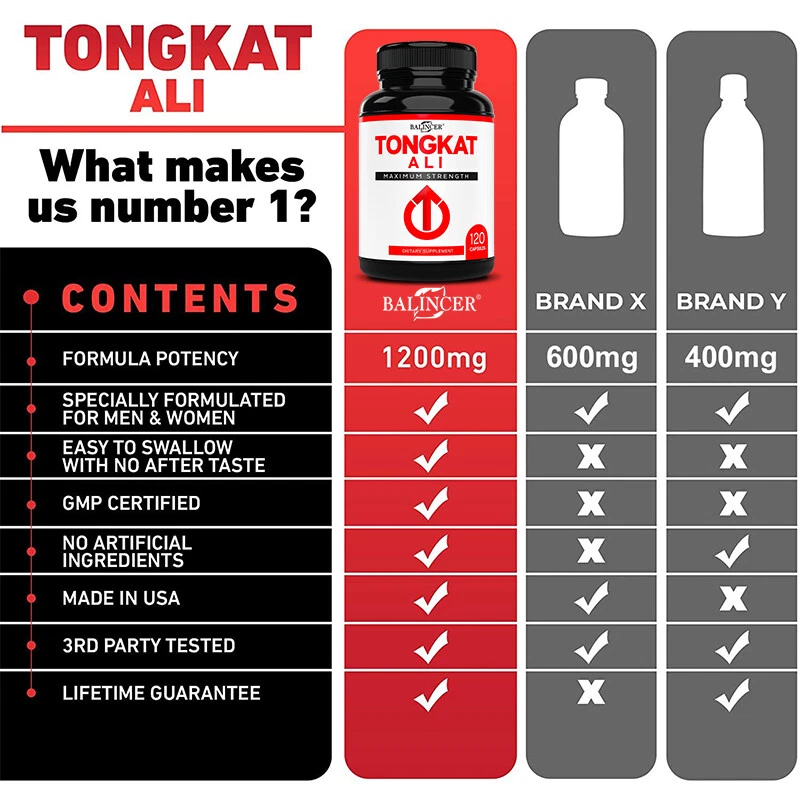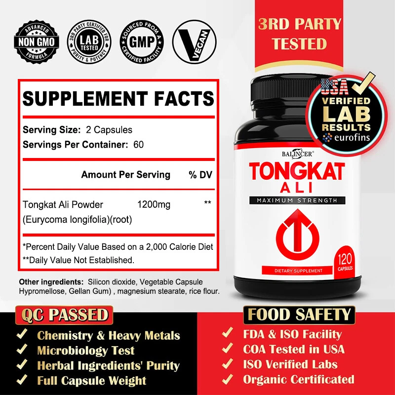 Stamina & Stamina - Extracted from the Ori colon longifolia plant, our Longjack complex improves athletic endurance and helps you perform at your best! Tongkat ali is thought to help the body adapt to occasional stress, and may have a concentration job to help you stay focused and feel good. Optimal Performance & Motivation - Tongkat Ali has been shown to promote energy levels, healthy muscles, and overall performance at the gym, work, and in your personal life. Tongkat Ali has other benefits, including promoting motivation, strength, and stamina. For optimal performance, it is recommended to take Fadogia Agrestis & Turkesterone at the same time. Made in America - is an American company that creates jobs and a better future for all of our employees and stakeholders. All of our supplements are proudly made in the USA! Our Tongkat Ali Complex Capsules are manufactured in the USA and tested for safety against heavy metals and microbes in a state-of-the-art facility. Manufactured in a GMP Certified Facility - Gluten Free, Wheat Free, Dairy Free, Sugar Free, Soy Free, Yeast Free. Our Tongkat Ali Capsules are GMP compliant to ensure premium quality. Our supplements are always free of unnecessary additives or preservatives and are independently tested by a third party.