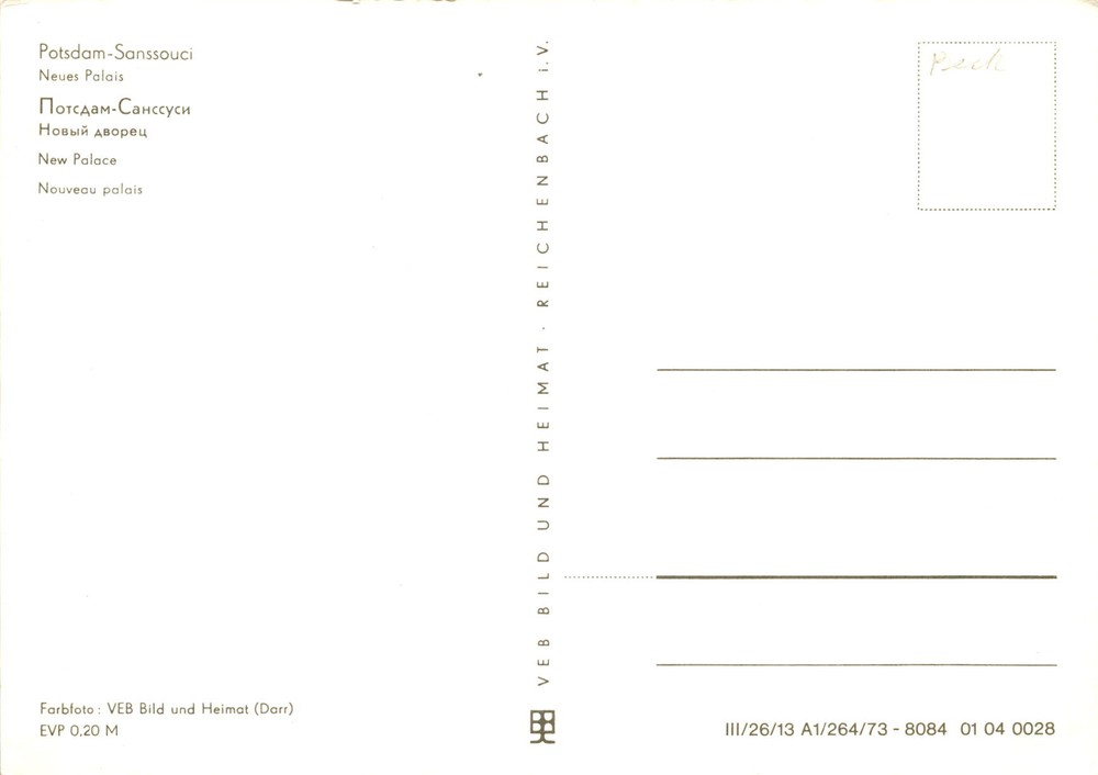 MAKE AN OFFER. THE MORE YOU BUY THE BETTER DEAL I WILL ACCEPT This postcard features a colorful photo of the New Palace in Potsdam-Sanssouci. The New Palace, also known as the Neues Palais in German, is a Baroque palace located in the Sanssouci Park in Potsdam, Germany.