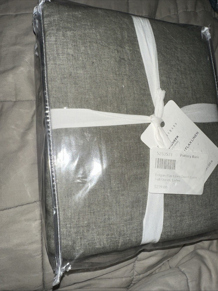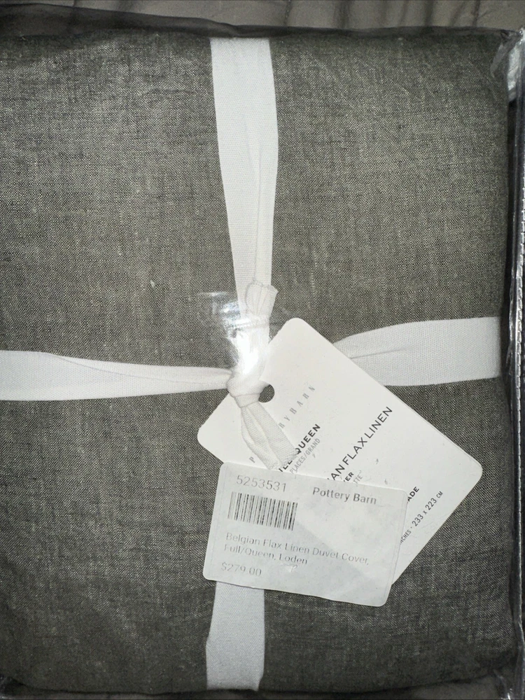 The Pottery Barn Belgian Flax Linen Duvet Cover in Loden Green is a luxurious addition to any bedroom. Made from high-quality linen and flax, this duvet cover offers a comfortable and stylish option for a queen-sized bed. The elegant color and brand reputation of Pottery Barn ensure a timeless and sophisticated look for your bedroom decor.