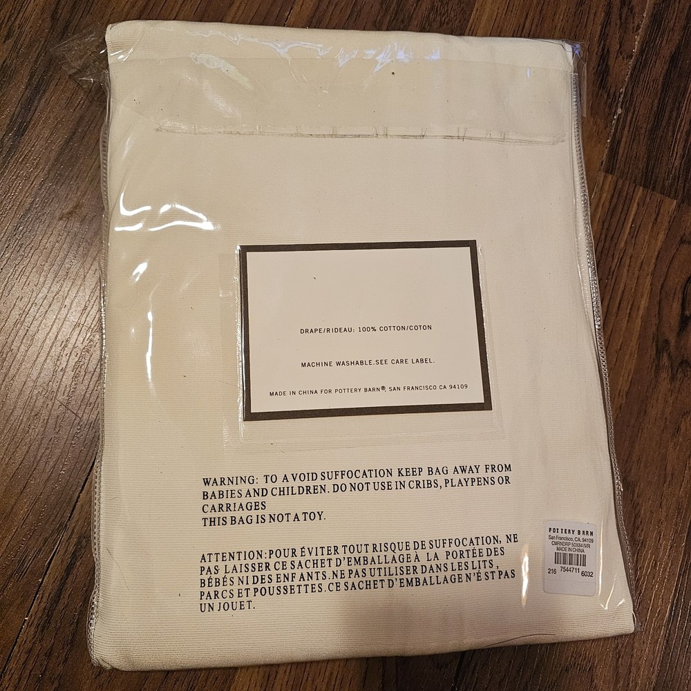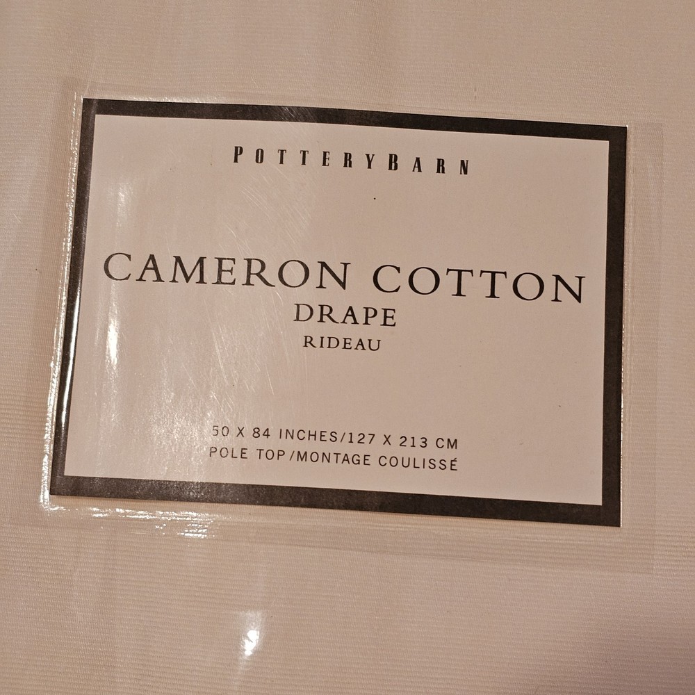The Pottery Barn Cameron Cotton Drape Curtain is a luxurious addition to any room, featuring a solid ivory color and subtle pole top mounting. Made of high-quality cotton, these panels have a width of 50 inches and a length of 84 inches, perfect for providing privacy and elegance to your living space. Imported from China, this new curtain are a stylish and durable choice to enhance your home decor.