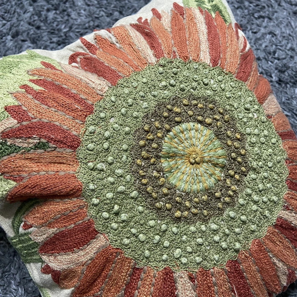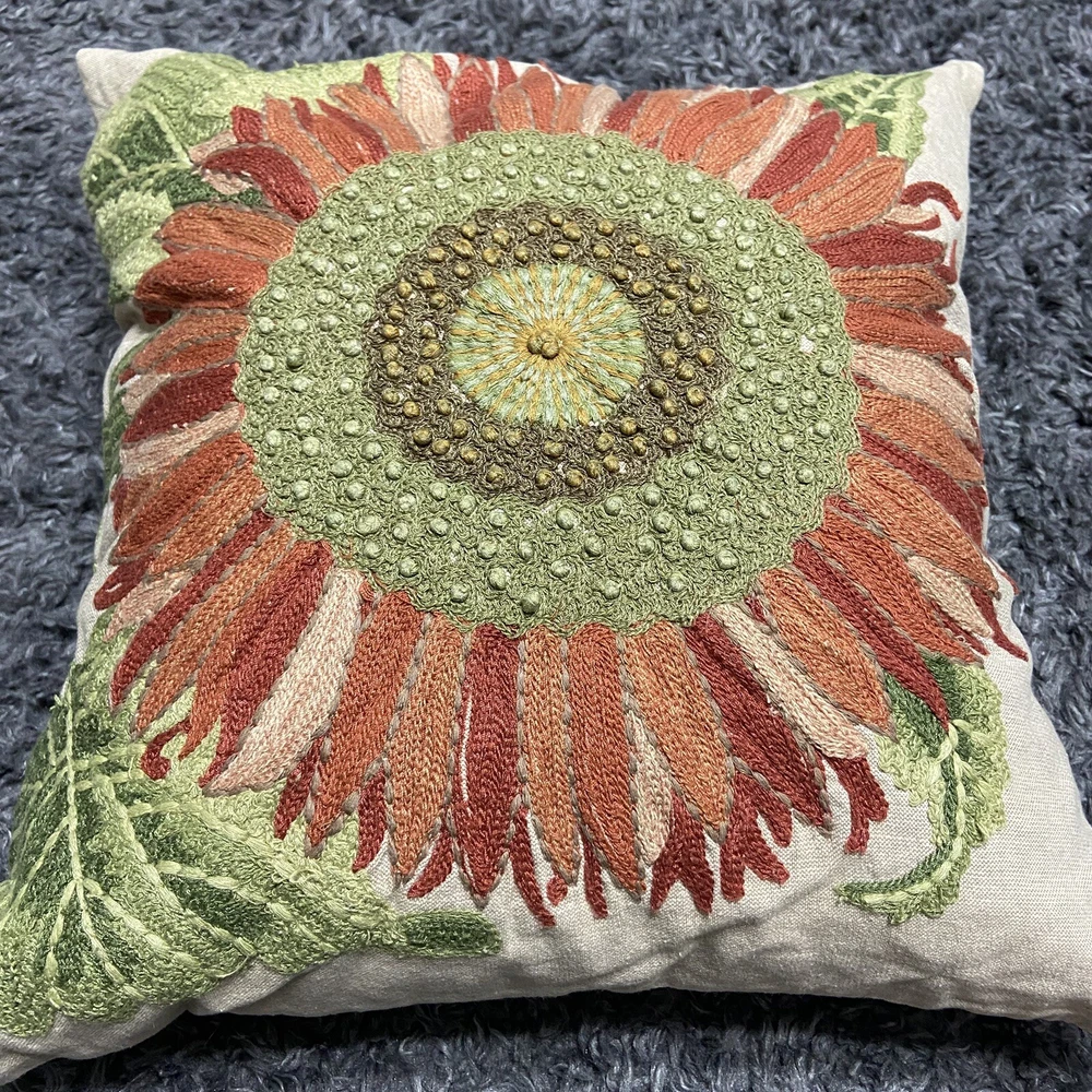Add a touch of nature to your home decor with this beautiful Pottery Barn Crewel Embroidered Sunflower 18"x18” Decorative Pillow Cover. The cover features a vibrant multicolor sunflower pattern with intricate embroidery that gives it a unique and decorative style. Made of 100% cotton, this pillow cover is perfect for anyone who loves flowers and nature. The square-shaped cover has a button closure type and fits an 18 x 18 inch pillow insert. It is perfect for use in any room of the house, including the living room, bedroom, or even outdoor spaces. This Pottery Barn Sunflower Pillow Cover is a great addition to any home decor and is perfect for those who want to add a touch of elegance to their living space.