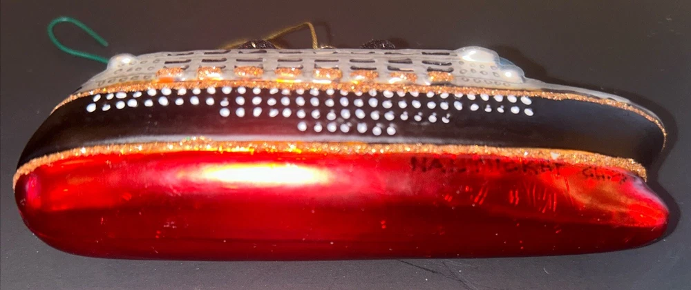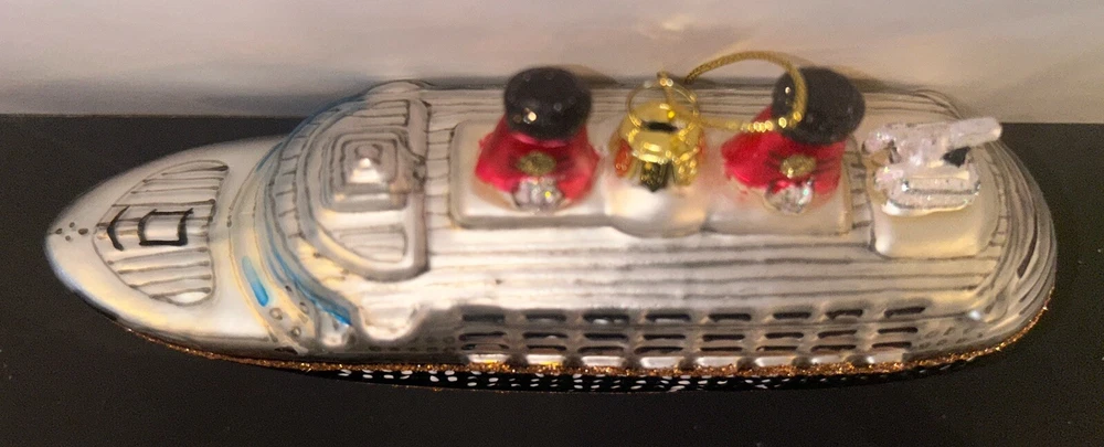 Adorn your Christmas tree with the whimsical charm of the Pottery Barn Cruise Ship Christmas Ornament. This small, intricately designed glass ornament captures the essence of a nautical adventure, making it a delightful addition to your holiday decor. Its vibrant, multicolor palette and detailed ship shape bring a touch of seaside nostalgia to your festive celebrations. Crafted with care, this unbranded ornament is perfect for those who appreciate a unique and tasteful holiday accent. Whether you're looking to commemorate a special trip or simply want to infuse your holiday with a coastal theme, this ornament is a wonderful choice that will surely become a cherished part of your Christmas tradition. kk381