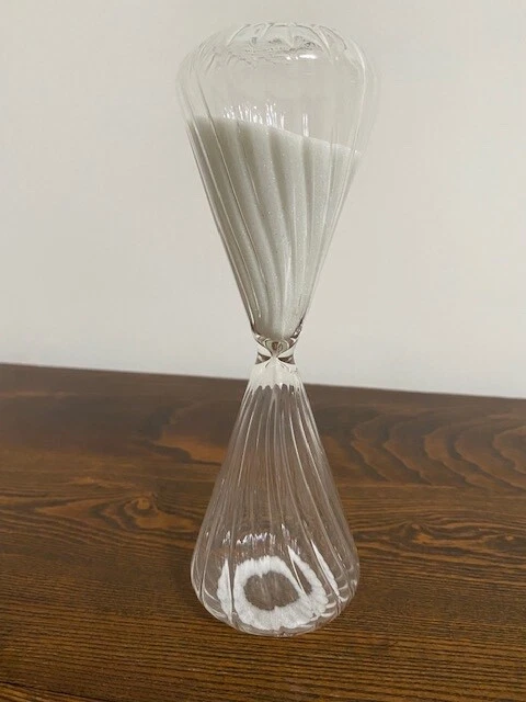 Beautiful swirled glass holds white sand. Approximately 10 minute timer
