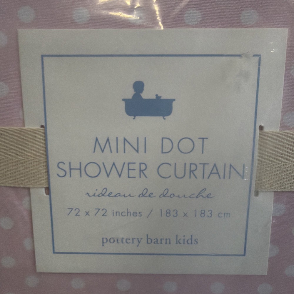 Pattern:Polka DotSuitable For:ShowerColor:PinkFeatures:Mashine WashableType:Shower Curtaingtin13:Does not applyUPC:Does not applyMPN:1430891Item Length:72 inRoom:BathroomCountry of Origin:PakistanBrand:pottery barn kidsMaterial:Cotton