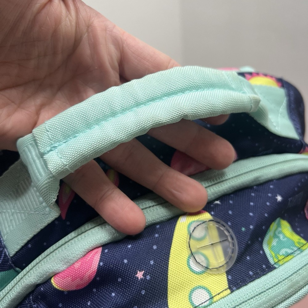 In good preowned condition. Size is standard and can fit a folder. Has a name that is blacked out on the inside zip pocket. Some minor discoloration/first on the handle and trim (as shown in photos) no holes or noteable flaws