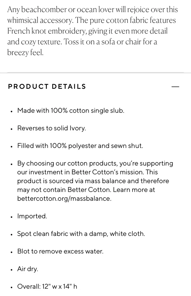 I purchased new from PB online and never took it out of the plastic. No longer available. SF, pet free home. Some pictures here are from the manufacturer including specifications. Please see all photos. Color per PB is ivory.