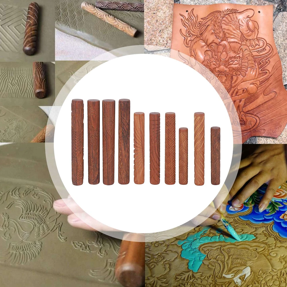Pottery Tools,Wooden Handle Rollers Clay Modeling Pattern Rollers Kit3030 Made of high quality wood. This pottery tool can be used on a thrown pot or clay slabs for texture and . With clear texture, easy to use with any crafting clay to design and create your own clay embellishments. Art pottery tool design is reasonable, light and convenient, with the features of easy to clean, recyclable and long-term use. color:wood color Material: Wood Shape: Cylindrical Package Included: 1 set x Pottery Tool
