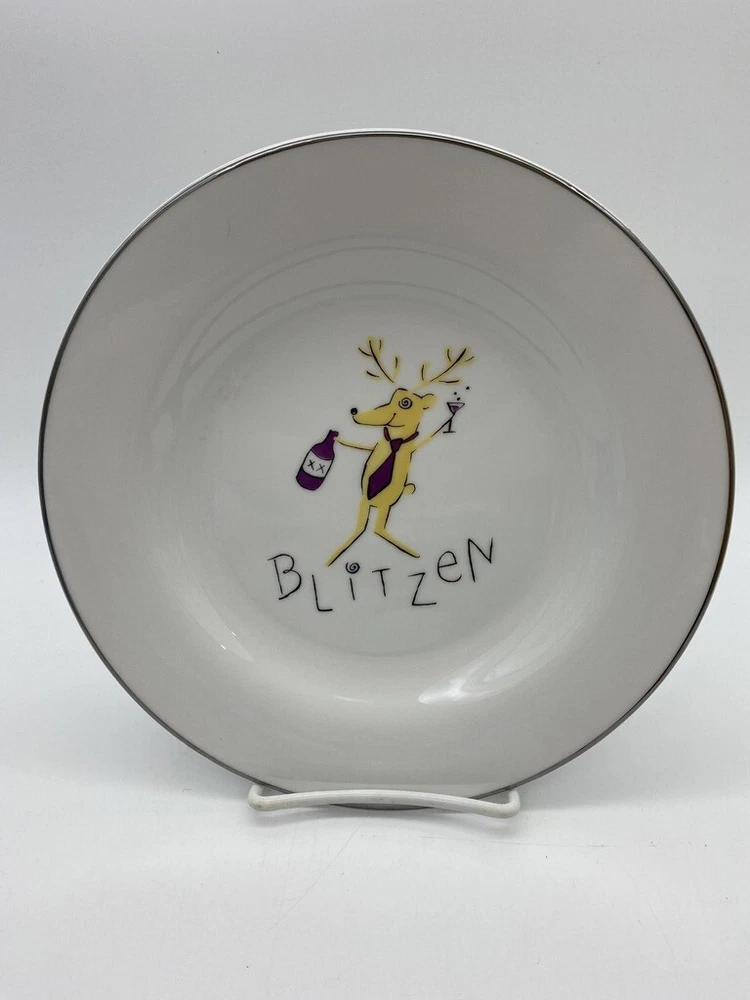 Pottery Barn Reindeer Plate 8 1/2" Salad plate very nice clean condition silver band around plate Blitzen Box 114