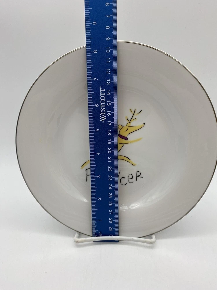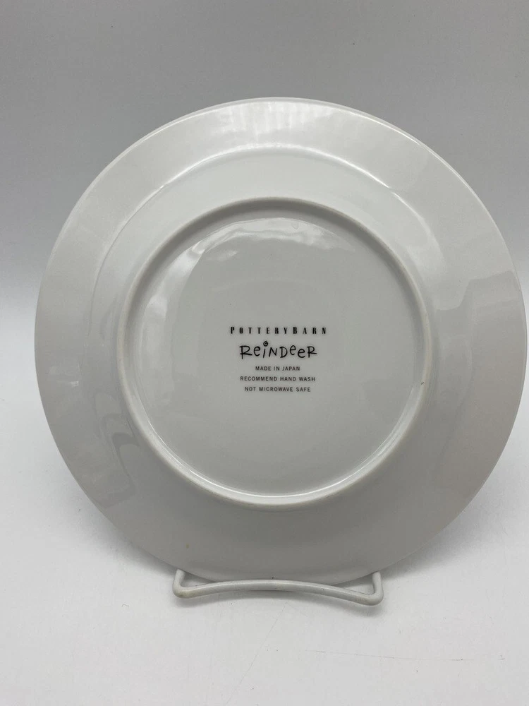 Pottery Barn Reindeer Plate 8 1/2" Salad plate very nice clean condition silver band around plate Prancer Box 114