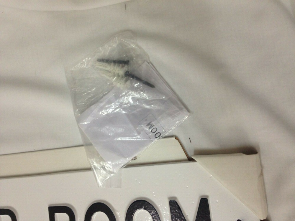 Rectangular wall sign brings instant character to your powder room Raised black text over white rectangular base gives it a sleek, chic look Includes mounting hardware for easy hanging on any wall